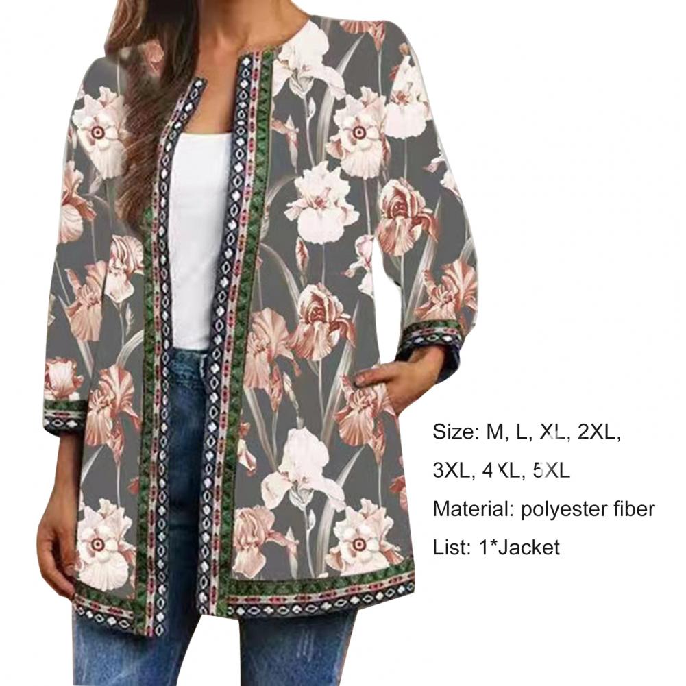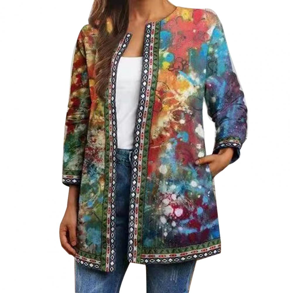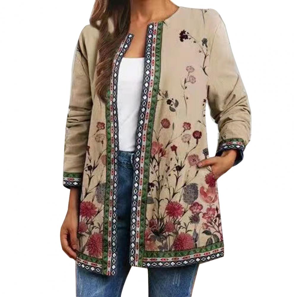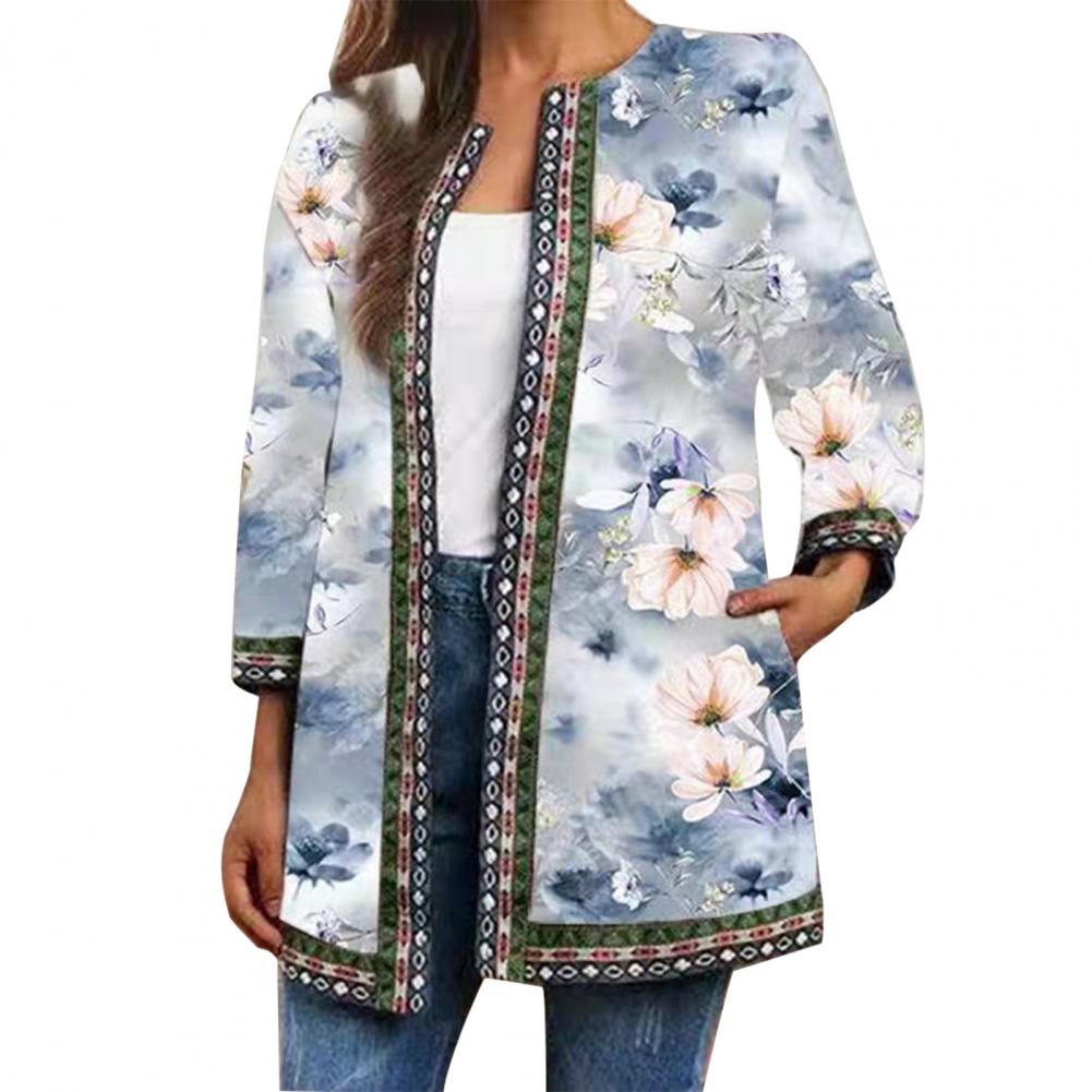 Женский кардиган, пальто с цветочным принтом и круглым вырезом, осенне-зимняя Свободная куртка с вырезом лодочкой для повседневной носки