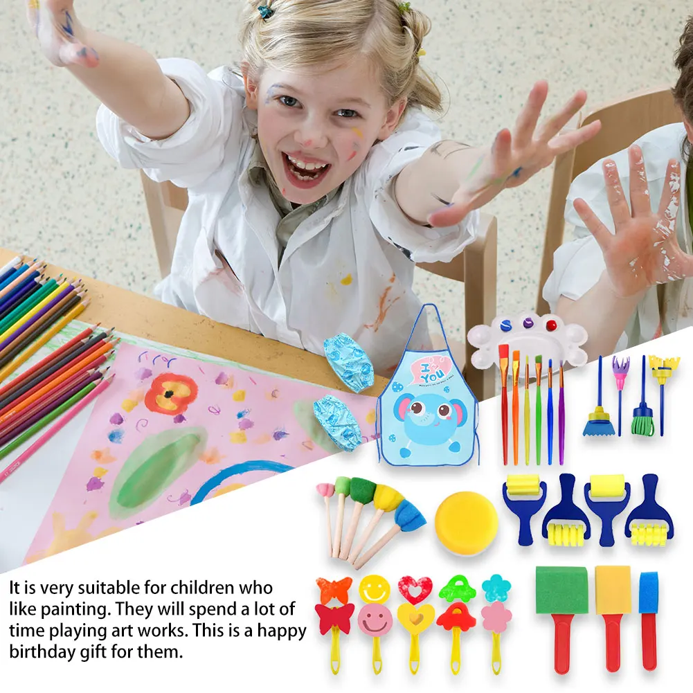 44pcs Sponge Painting Brushes Kit Mini DIY Kits Early Learning Kids Paint Set Roller Brush Child Apron Play Gift | Игрушки и хобби