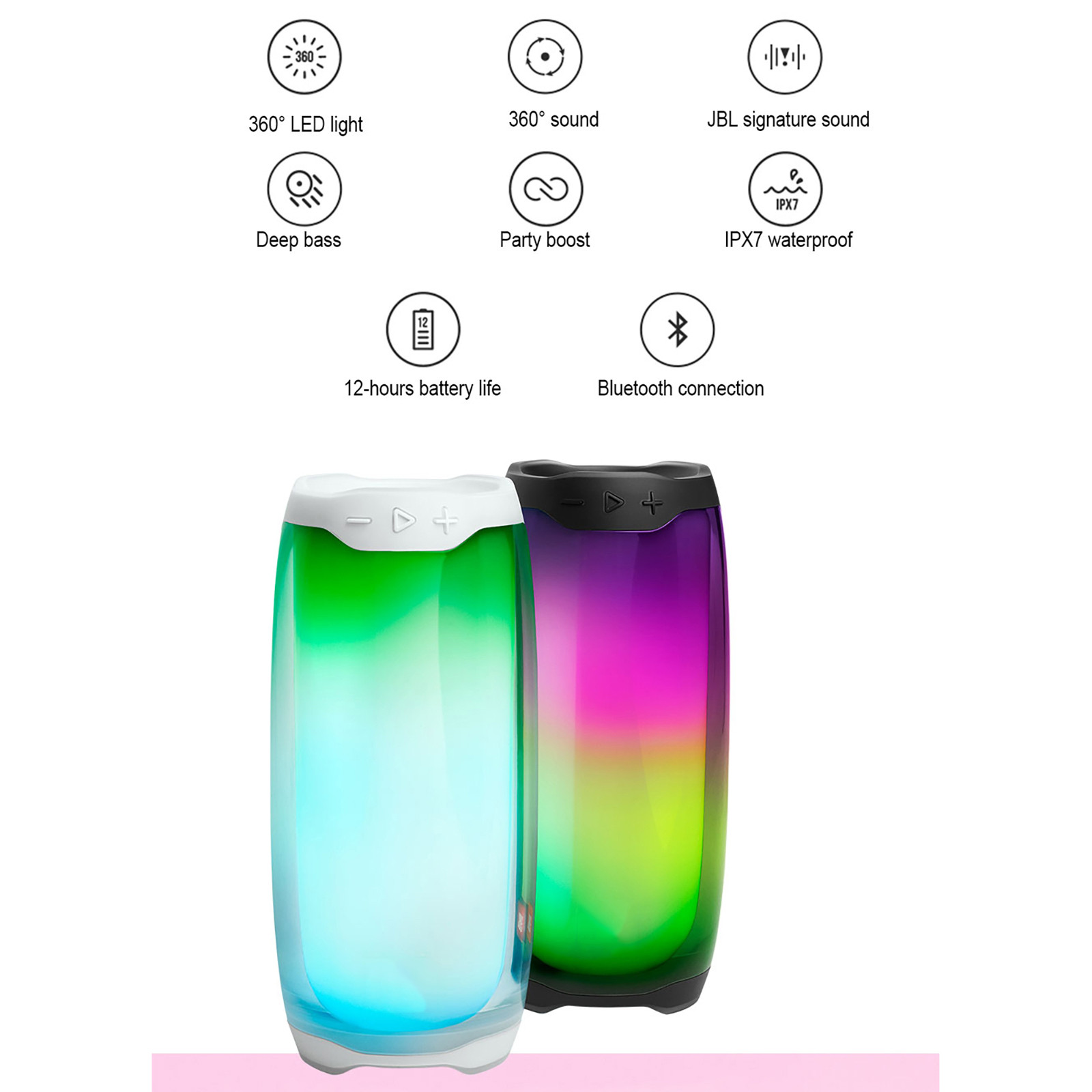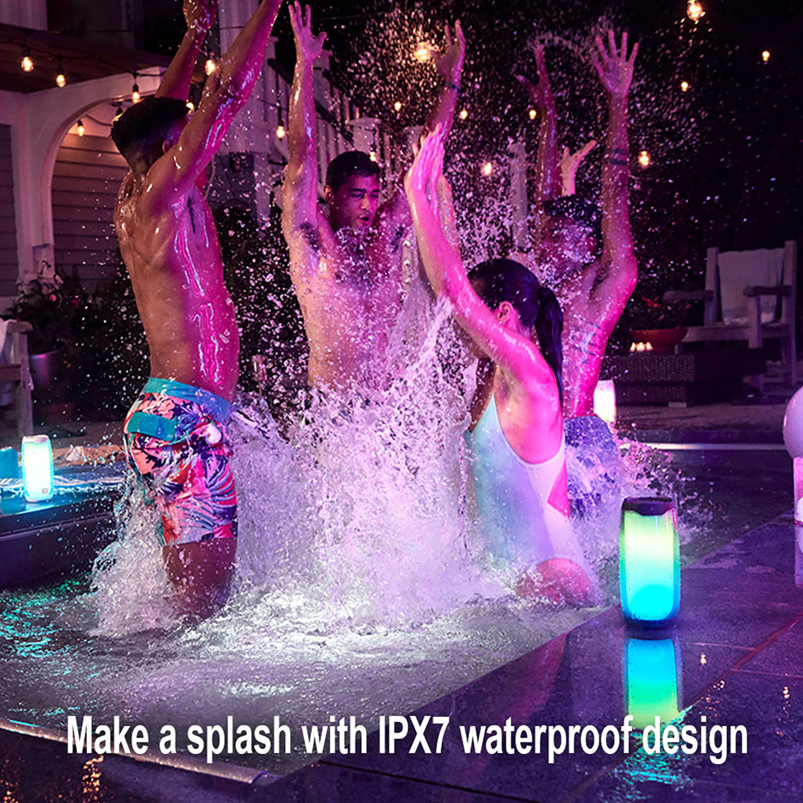 Pulse 4 Bluetooth Speaker With LED Light Subwoofer IPX7 Waterproof Speaker