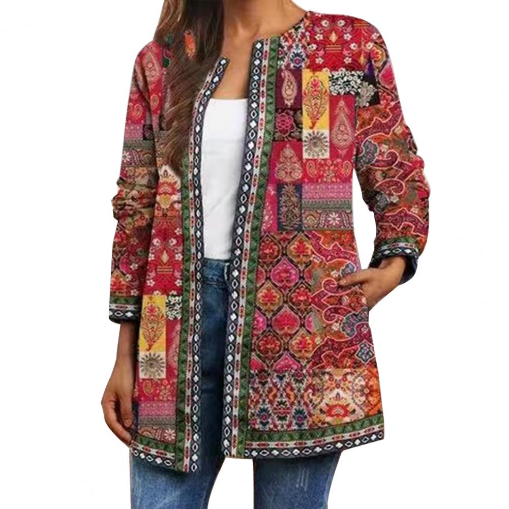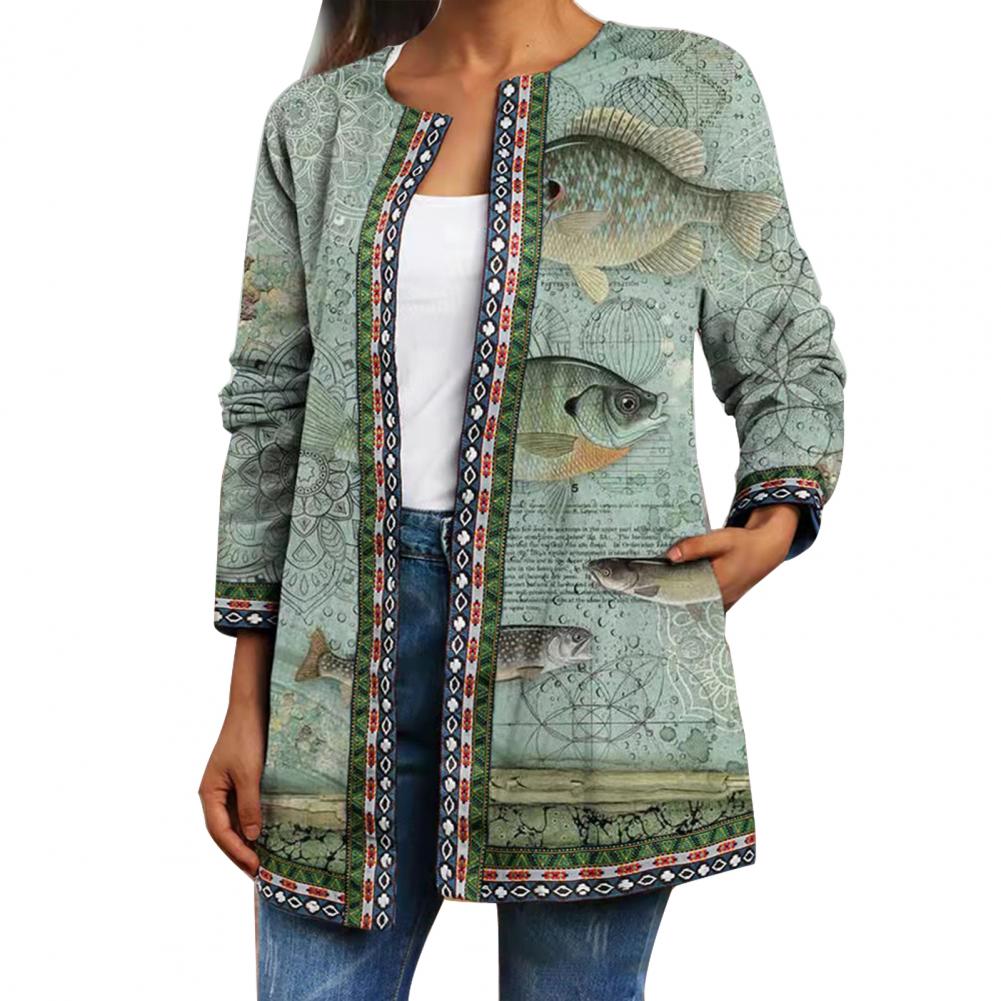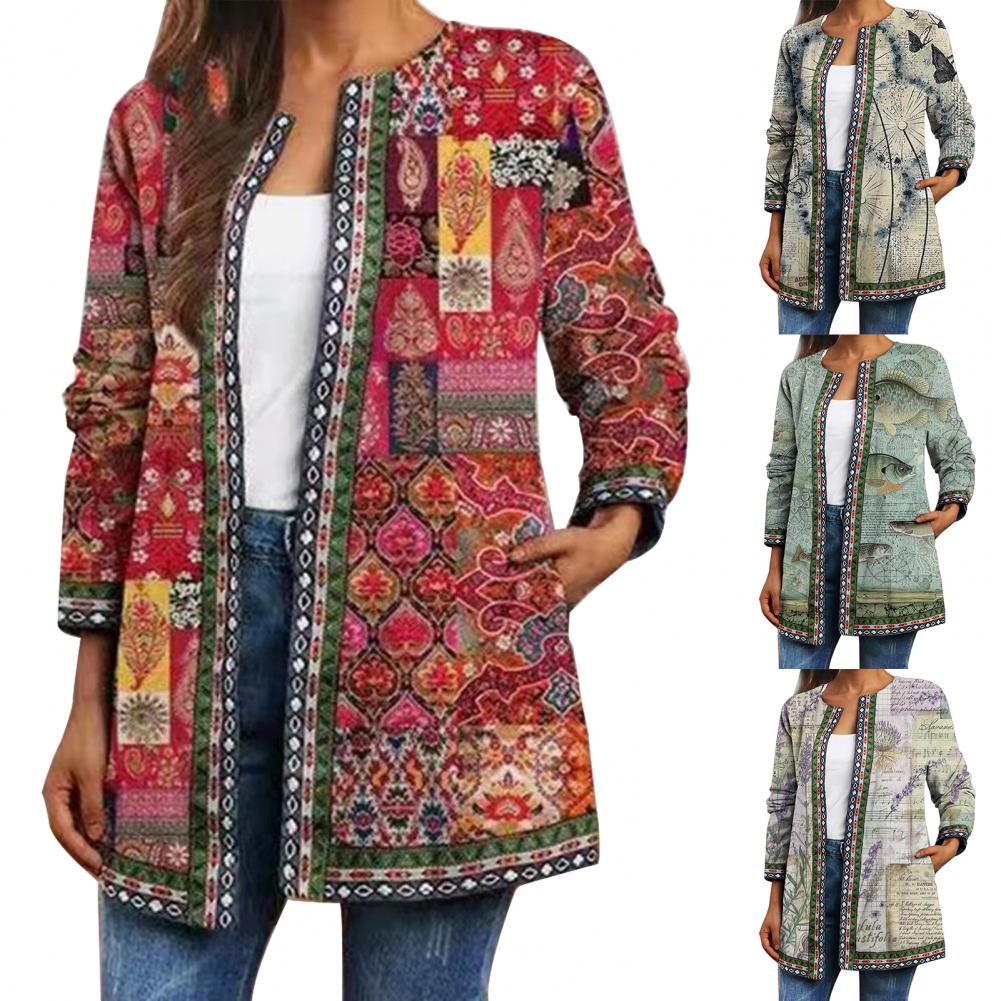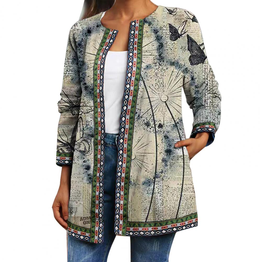 Кардиган; Пальто с этническим принтом; Верхняя одежда с круглым вырезом; Универсальная куртка; Сезон осень-зима