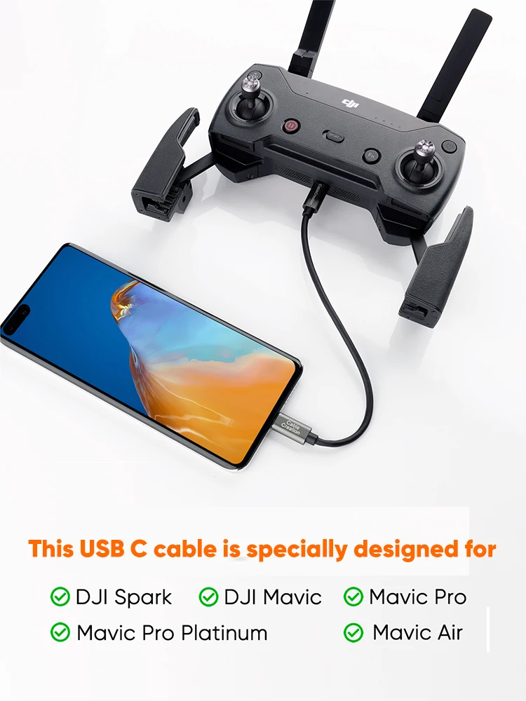 Этот кабель DJI USB C специально разработан для DJI Spark/DJI Mavic Mini/ Mavic Pro Platinum/ Mavic Air/ Mavic 2 Pro/Zoom, подключите контроллер DJI к телефонам или планшетам Android USB C для передачи данных.