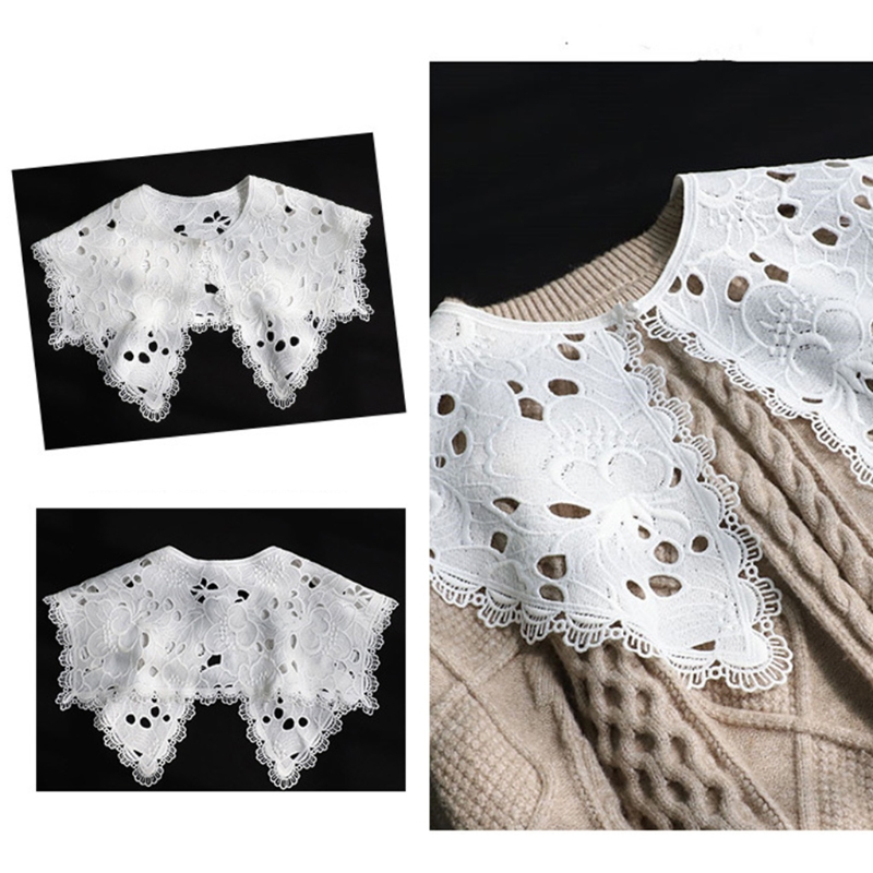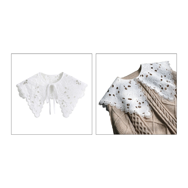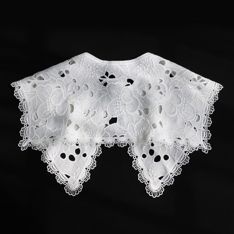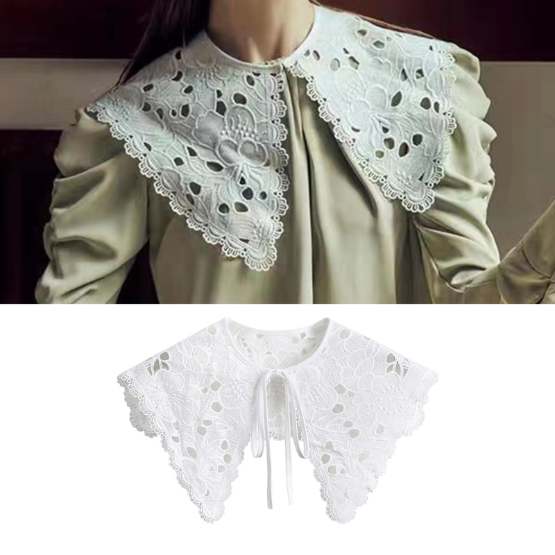 Французский стиль, женская мини кружевная накидка, съемный белый накладной воротник, вырез, рюши, вышивка, Цветочный платок, накидка
