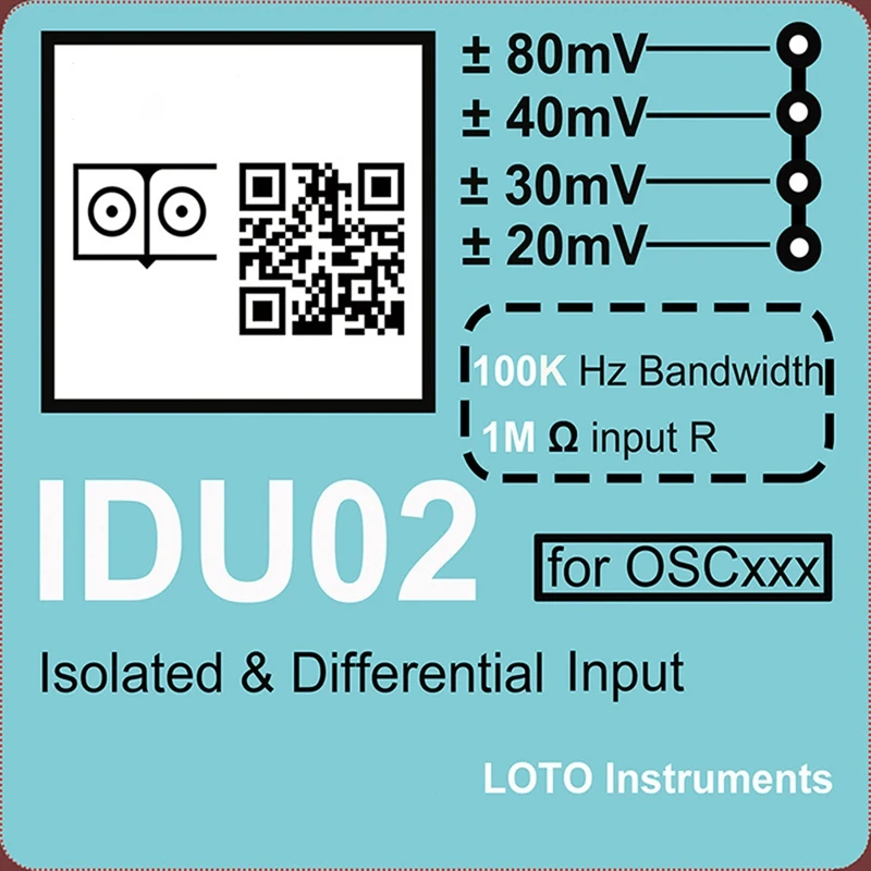 Подключите IDU02 к осциллографу LOTO для измерения небольших сигналов (МВ). IDU02 дифференциальный изолированный, он может измерять небольшие сигналы, не беспокоясь о напряжении общего и общего режима.