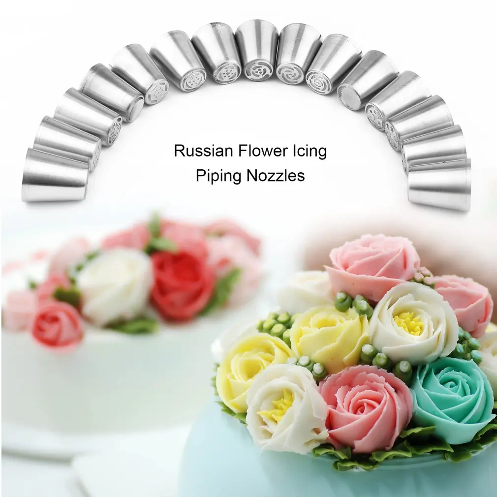 15 шт./компл. русский тюльпан Обледенения Трубопроводов Сопла из нержавеющей стали цветок крем Кондитерские насадки мешок Кекс Торт украшения инструменты