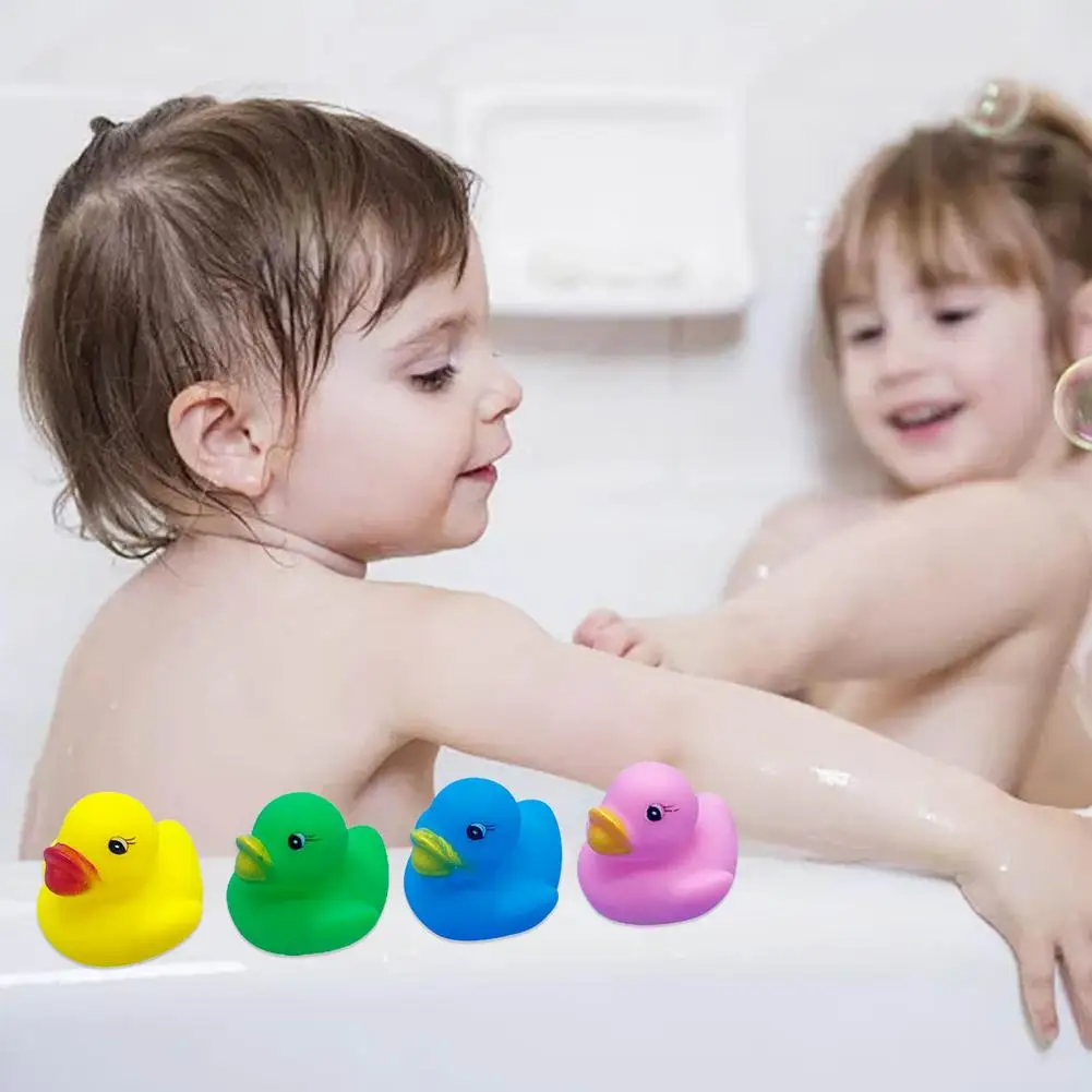 2、Beautiful Shapes and Colors: The toys have cute duck shapes with colorful colors, including yellow, pink, black, green, blue, random colors. And it can help babies identify colors and shapes.