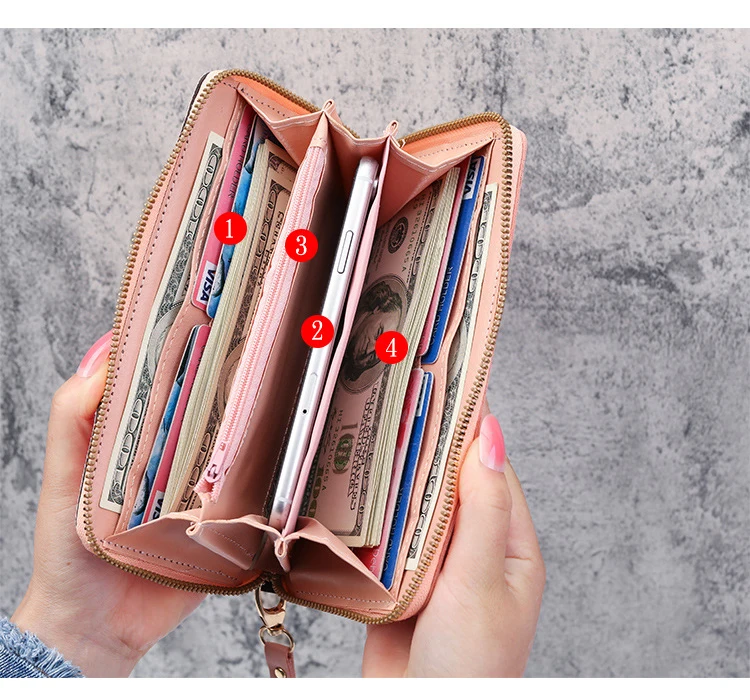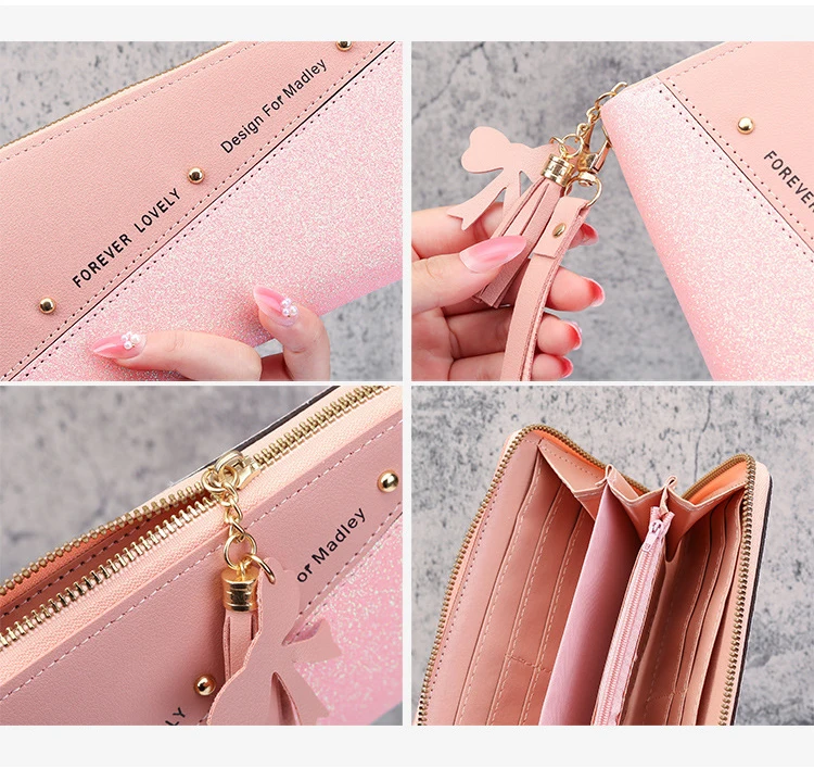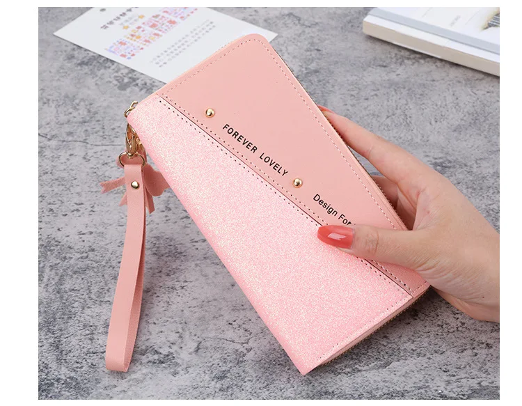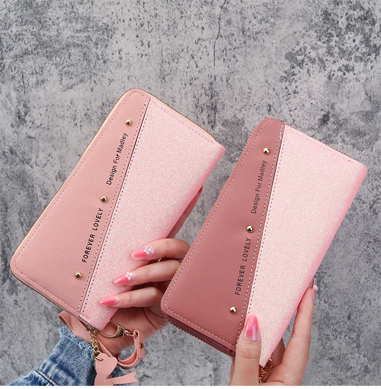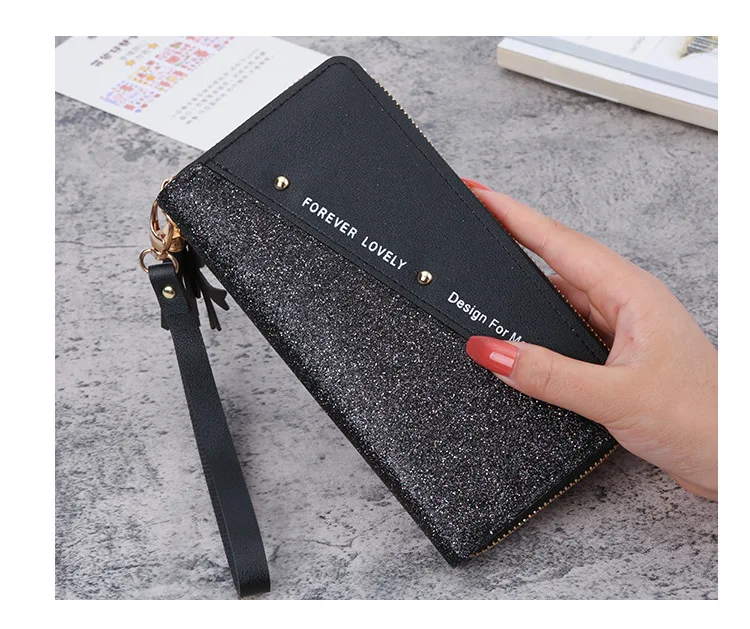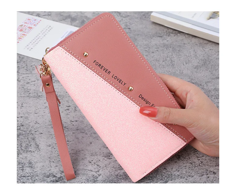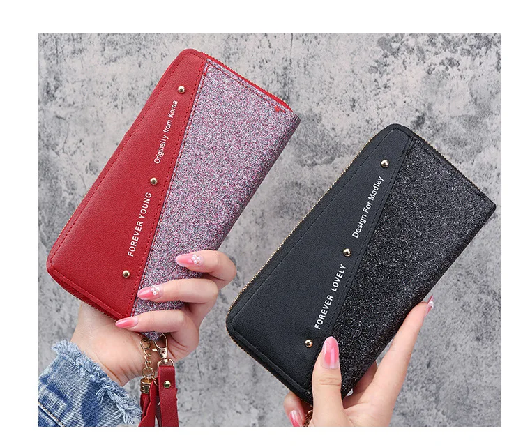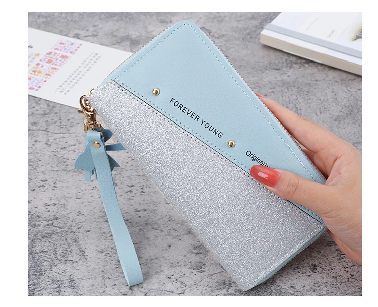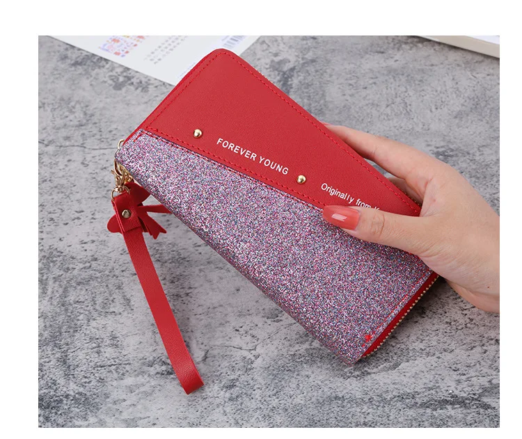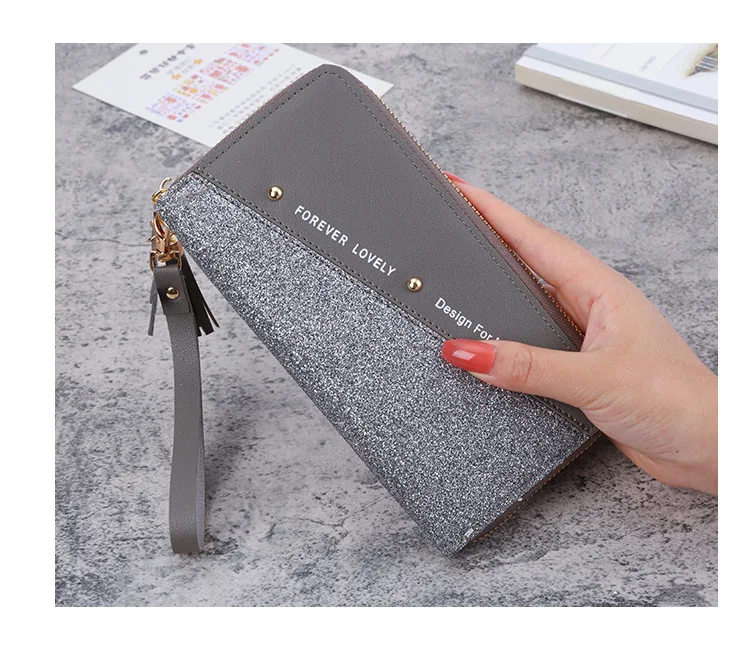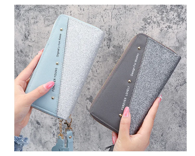 Голограмма серебро бумажник с застёжкой-молнией длинные женские кошельки денег