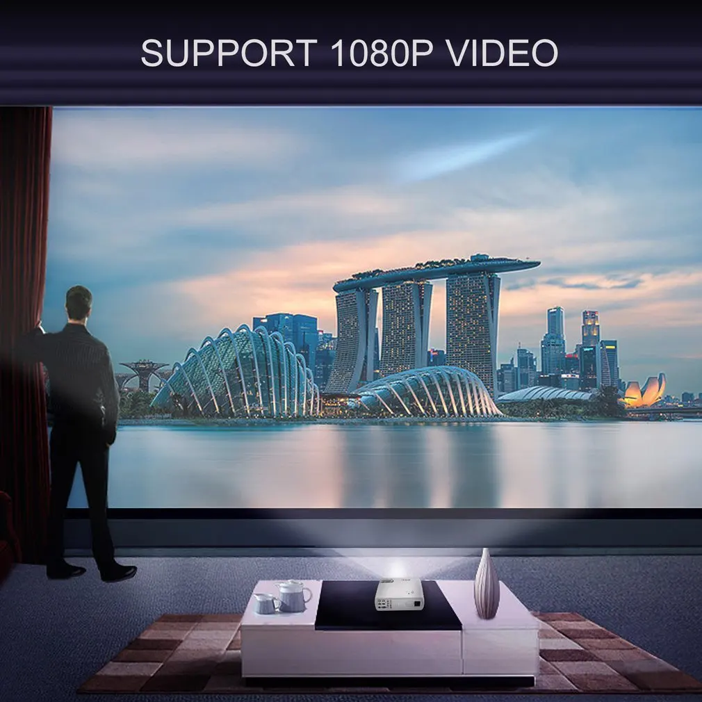 3. Разрешение (dpi): 800x480, поддержка 1080P, Размер проекционного экрана: 32-128 дюймов, цвет: 16,7 K