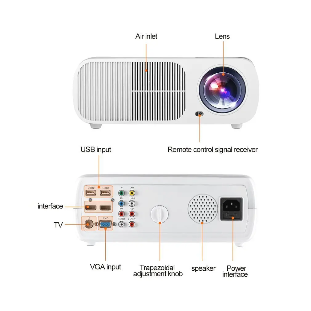 4. Адаптер: AC100V-240V, 50 Гц/60 Гц, встроенный динамик: 3 Вт аудиовыход, 3 вида методов проекции: передний/задний/потолочный