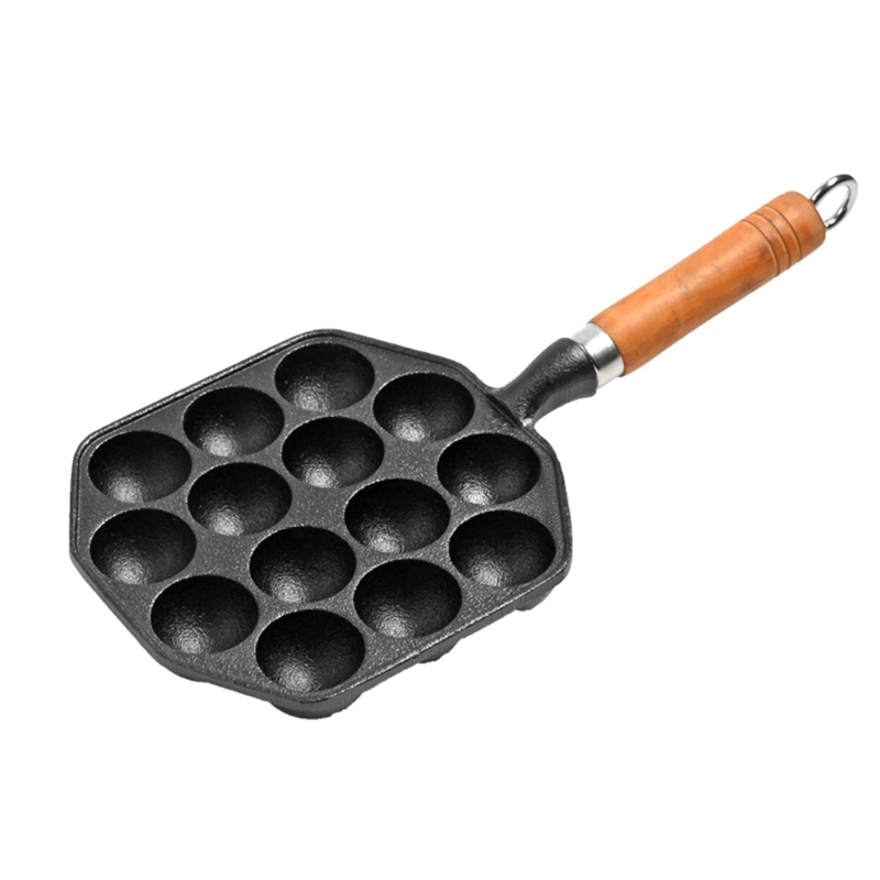 Сковорода для гриля Takoyaki с 14 отверстиями антипригарный лоток для выпечки Takoyaki с деревянной ручкой Прямая поставка