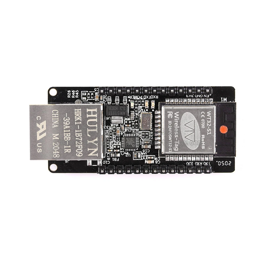 Feature: 1. Dual-core Xtensa 32-bit LX6 MCU is adopted. Integrated SPI flash 32 Mbit\ SRAM 520KB. 2. Supports TCP Server, TCP Client, UDP Server, and UDP Client working modes. 3. Supports serial port, WiFi, Ethernet, and Bluetooth-Compatible data ports in pairs for transparent data transmission. 4. Firmware upgrade through wired network or WiFi. 5. WiFi access the Internet or LAN through the router, establish TCP/UDP connections, and access the specified server of the user. 6. Support wired network access. 7. Secondary development is supported. 8. Industrial working temperature range: -40℃~+85℃ 9. Baud rate of serial port: 80-5000000 10. Network protocols: IPv4, TCP/UDP 11. Software encryption: AES/ RSA/ECC/SHA Specification: Size: 55*26mm/2.2x1in Note: Due to the different monitor and light effect, the actual color of the item might be slightly different from the color showed on the pictures. Thank you! Please allow 1-2cm measuring deviation due to manual measurement. ![]() 1 x WT32 Module