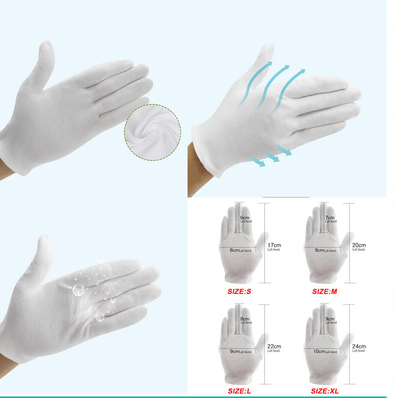 6 пар, белые рабочие перчатки из хлопка, ювелирные изделия для монет, легкие размеры S, M, L, XL