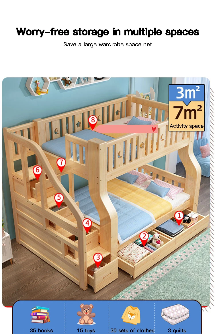 C. Материал выбирается из высококачественной сосновой древесины, изготовленной из твердой древесины, низкого формальдегида и более экологически чистого, так что родители и дети могут быть более легко.