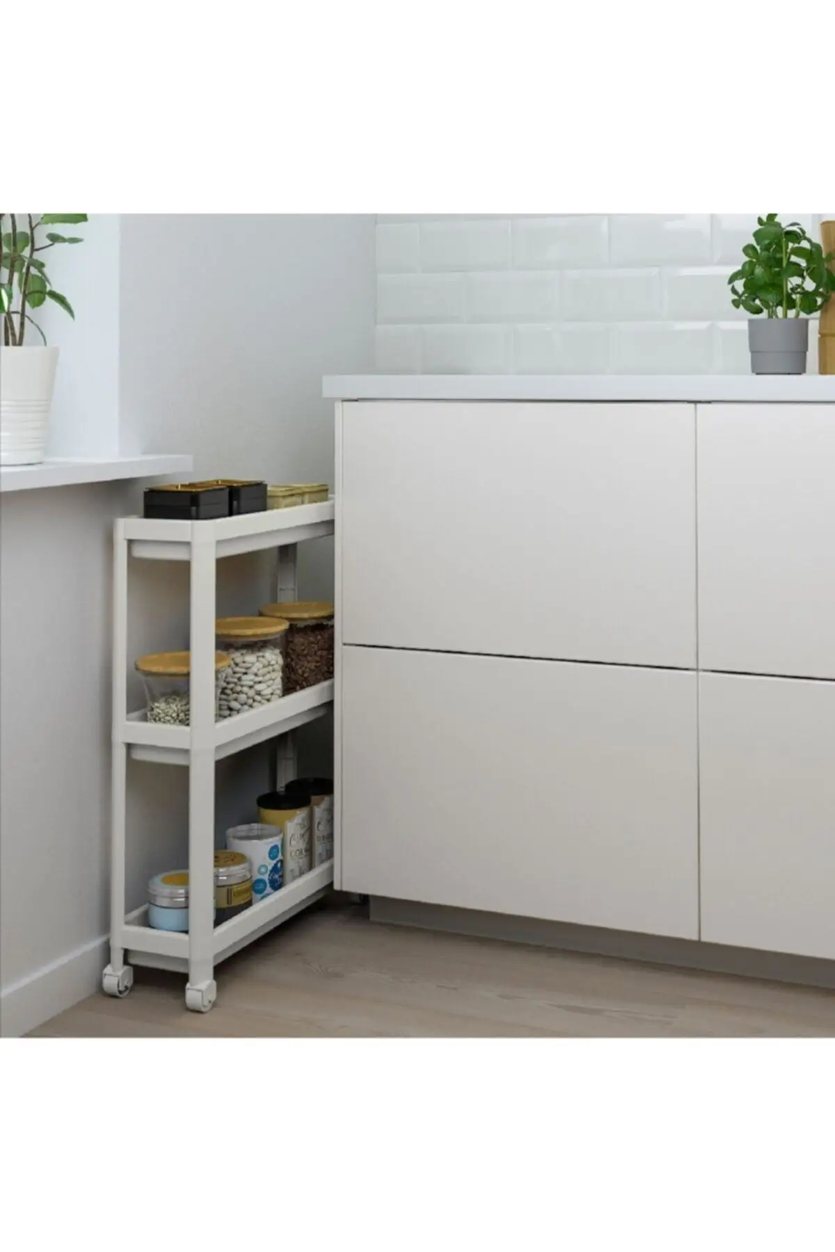 Стойка с колесом Vesken, 3 яруса, белая стойка для ванной комнаты, кухонная стойка, органайзер, размеры, ширина: 54 см, глубина: 18 см, Yükseklik:71 см, полки на расстоянии: 30 см
