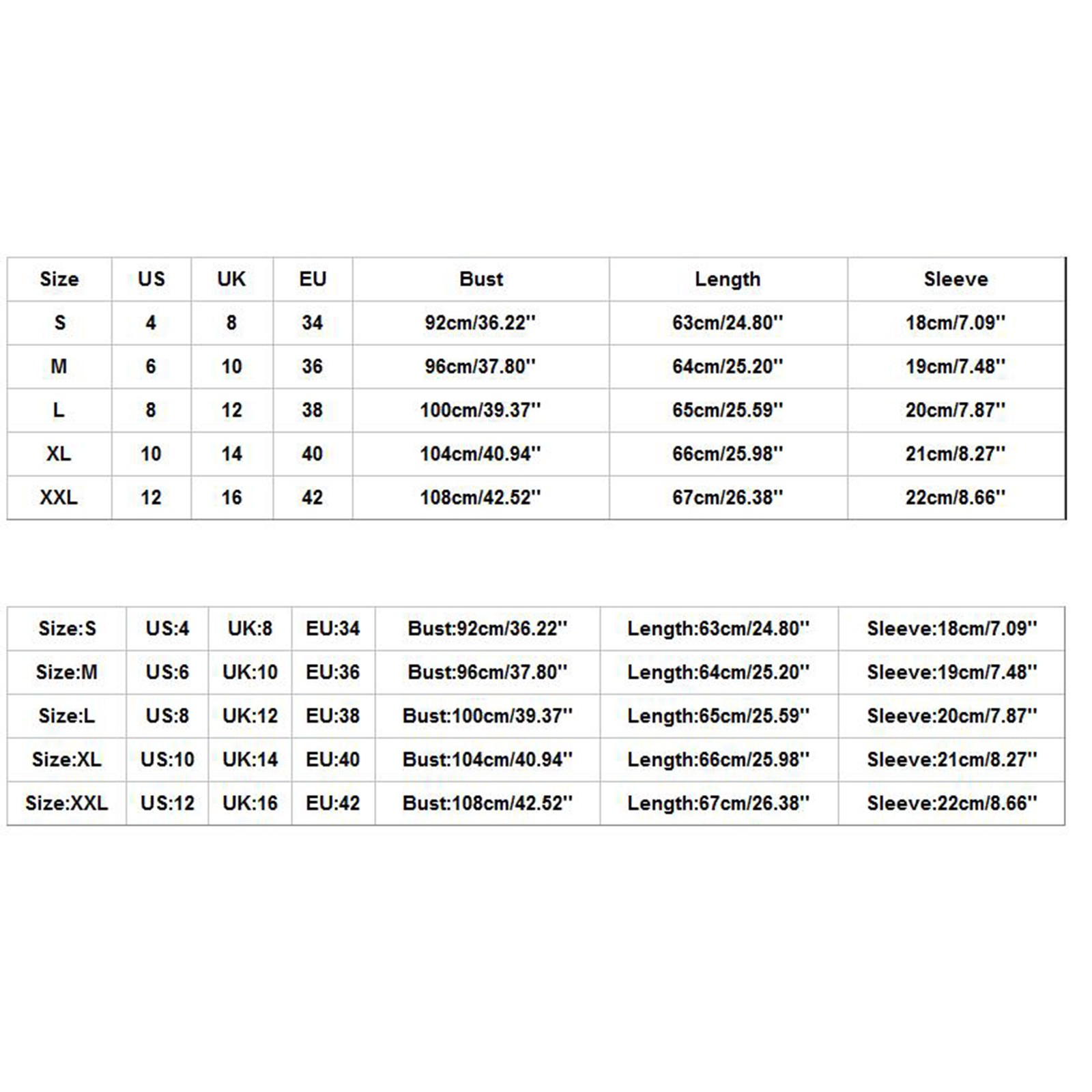 | Size | US | UK | EU | Bust | Length | Sleeve |