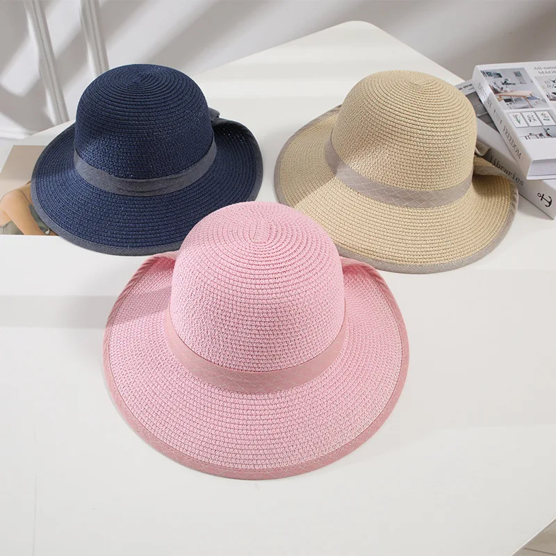 Шапка оверсайз Складная Женская летняя пляжная Соломенная от солнца с широкими