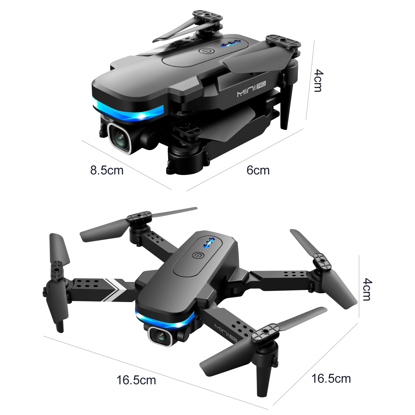 - Квадрокоптер Размеры: 16,5*16,5*4 см (в разложенном виде)