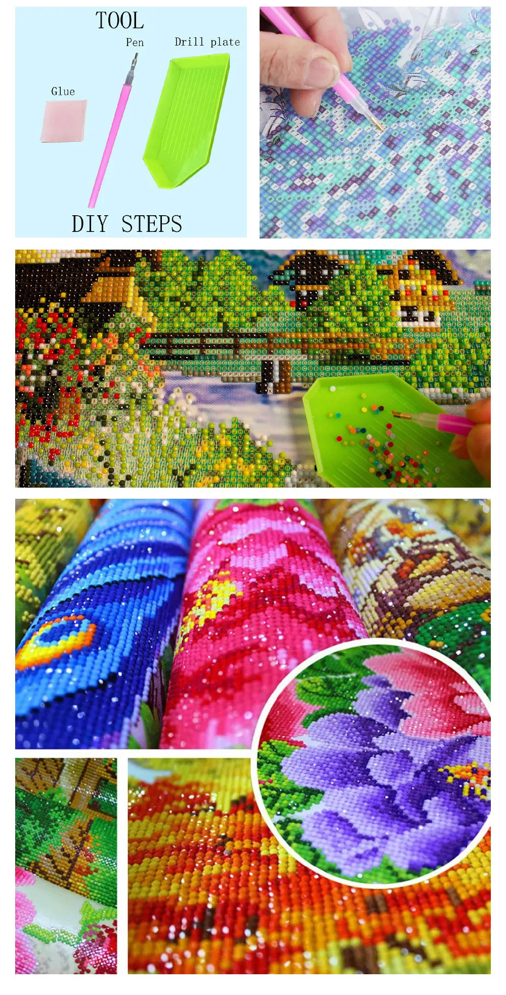 Notice:This is DIY diamond painting,not finished picture,you need to finish it by yourself.All the sizes are measured by hand,so please allow 1-2cm difference.