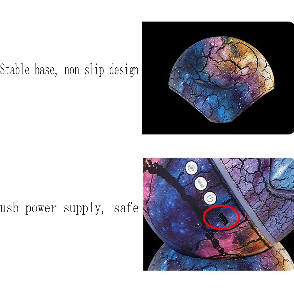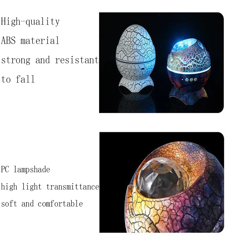 Проектор Dinosaur Egg Star сочетает в себе проектор, Ночной светильник, машину с белым шумом и музыкальный плеер для создания необыкновенного аудио и визуального эффекта. Этот проектор starlight имеет 14 ярких цветов и может проектировать сияющие звезды и память nebulae. Проектор starlight приносит огромное звездное небо в помещении, где вы и ваши дети могут наслаждаться мирной галактикой. Наслаждайтесь красотой пространства в комфорте вашего дома.