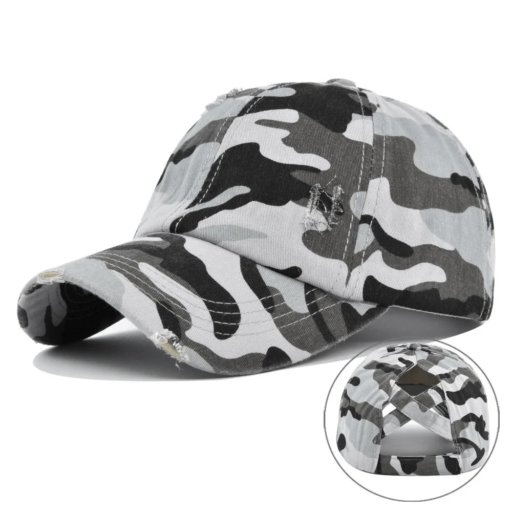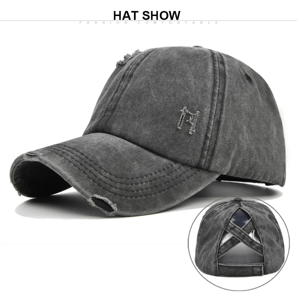 Женская винтажная бейсбольная Кепка из промытого хлопка, Солнцезащитная рваная Кепка с высоким хвостиком, Регулируемая Кепка Snapback