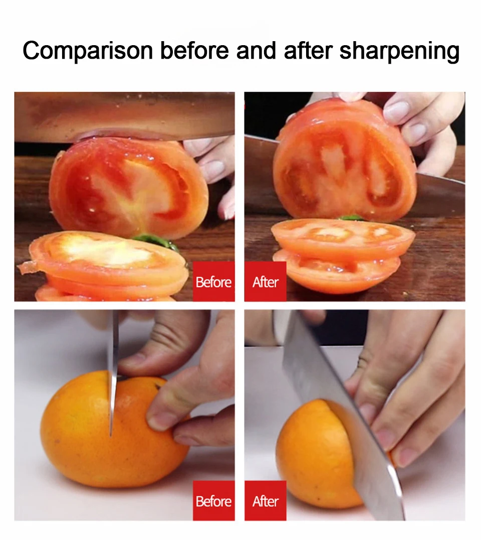 Подходит для всех видов ножей: нарезки ножей, разделочных ножей, многофункциональных ножей, ножей шеф-повара, фруктовых ножей, кухонных ножей, тупой нож для резки/нож для измельчителя/многофункциональный нож/нож для шеф-повара/нож для фруктов/нож для приготовления пищи.