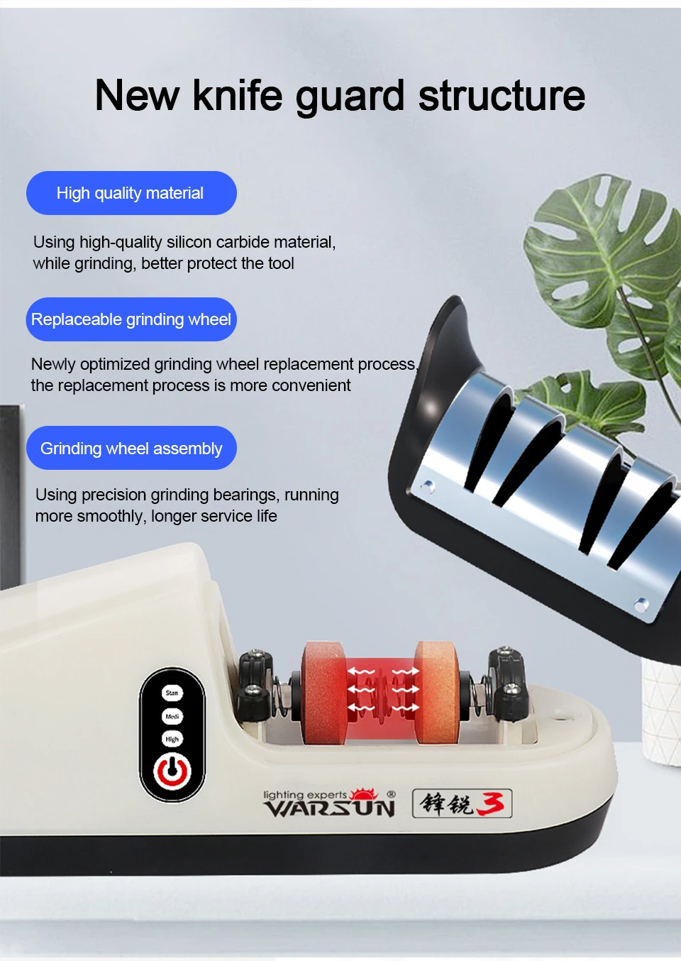1. Многофункциональный и профессиональный Ножи точилка-Профессиональный 2 этапа система заточки (сырой нефти & тонкой: грубого помола и тонкого помола) и три варианта скорости, это вполне могут удовлетворить ваши Ножи заточки.