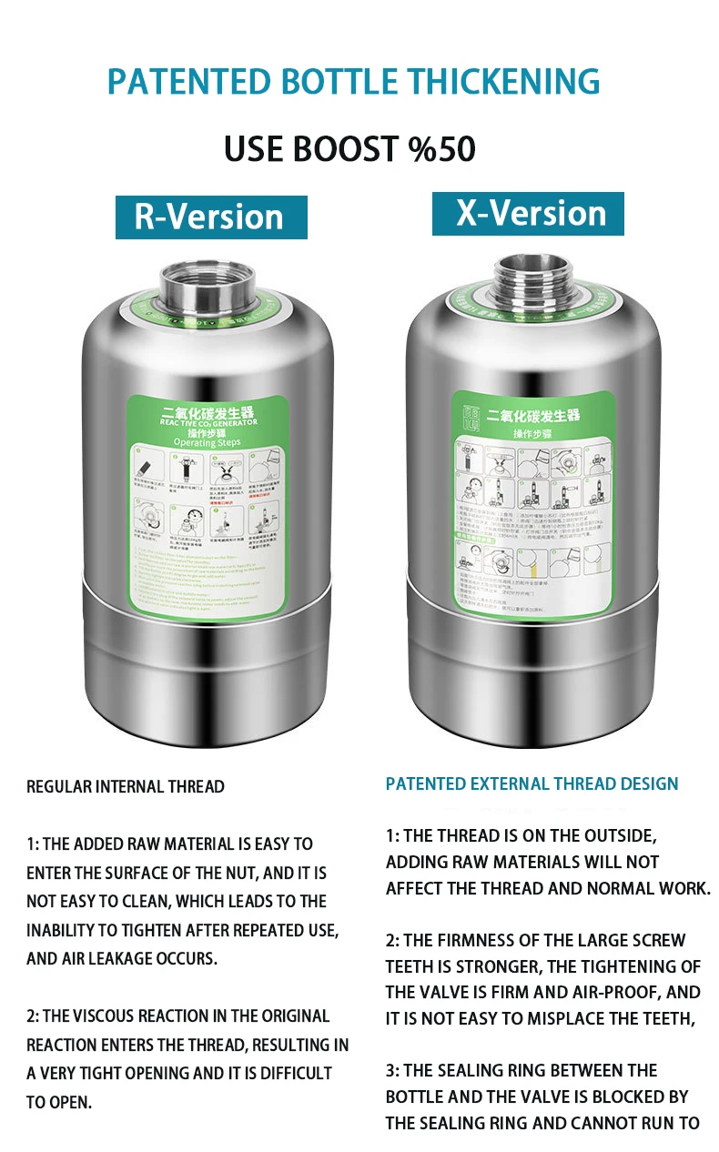 Электромагнитная версия: штепсельная вилка европейского стандарта США:AU, UK вилка, если требуется. Просто сделайте заметку после покупки! ZRDR 2022 Новый Аквариум CO2 цилиндрический генераторОсобенности и преимущества:~ Запатентованный корпус бутылки утолщен и используется быстро, 50% (больше, чем обычные стальные бутылки)~ Новый дизайн редукционного клапана с внешней резьбой, большая емкость, утолщенный корпус бутылки, более стабильный и безопасный!~ Настало время обновить пузырьковый счетчик, держаться подальше от старомодного Пузырькового метра, добавить пузырьковый метр, чтобы обновить введенную воду, добавить воду напрямую, удобно и просто!~ Профессиональная система генератора СО2 для бутылок из нержавеющей стали, превосходит простой генератор пластиковых бутылок. Более надежный, прочный и эффективный!~ Конструкция фильтрации: многократная фильтрация, фильтрация углеродного волокна, более стабильная, Спецификация:Название: генератор CO2 для аквариумаОсновной материал: нержавеющая сталь 304Основной цвет: серебристый (на фото) Описание модели:Новая лакированная версия: 2022 новая версияX01-1L: клапан из алюминиевого сплава + бутылка из нержавеющей стали (Емкость: 150 г лимонной кислоты + 150 г пищевой соды + 200 г воды)X01-2L: клапан из алюминиевого сплава + бутылка из нержавеющей стали (Емкость: 300 г лимонной кислоты + 300 г пищевой соды + 400 г воды)X01-1L: клапан из нержавеющей стали + бутылка из нержавеющей стали (Емкость: 150 г лимонной кислоты + 150 г пищевой соды + 200 г воды) (клапан с основным переключателем)X01-2L: клапан из нержавеющей стали + бутылка из нержавеющей стали (Емкость: 300 г лимонной кислоты + 300 г пищевой соды + 400 г воды) (с клапаном master switch) Обычная версия:R01-1L: клапан из алюминиевого сплава + бутылка из нержавеющей стали (емкость: 100 г лимонной кислоты + 100 г пищевой соды + 200 г воды)R01-2L: клапан из алюминиевого сплава + бутылка из нержавеющей стали (емкость: 200 г лимонной кислоты + 200 г пищевой соды + 300 г воды Двойной измерительный прибор версия клапана:R01-1L-A: клапан из нержавеющей стали + бутылка из нержавеющей стали (емкость: 100 г лимонной кислоты + 100 г пищевой соды + 200 г воды)R01-2L-A: клапан из нержавеющей стали + бутылка из нержавеющей стали (емкость: 200 г лимонной кислоты + 200 г пищевой соды + 300 г воды) Предупреждение:За исключением сырья и воды, чрезмерное или повторное использование запрещено.Инверсия и разборка бутылок запрещены.Вам нужно купить собственную соду и лимонную кислоту Информация об упаковке: Заводская упаковка (на фото), мы специализируемся на производстве СО2 генераторов, вы можете связаться с нами, если вам нужно 4L (потому что 4L тяжелый)Если у вас есть какие-либо вопросы, пожалуйста, свяжитесь с нашим магазином. Я рад служить вам!