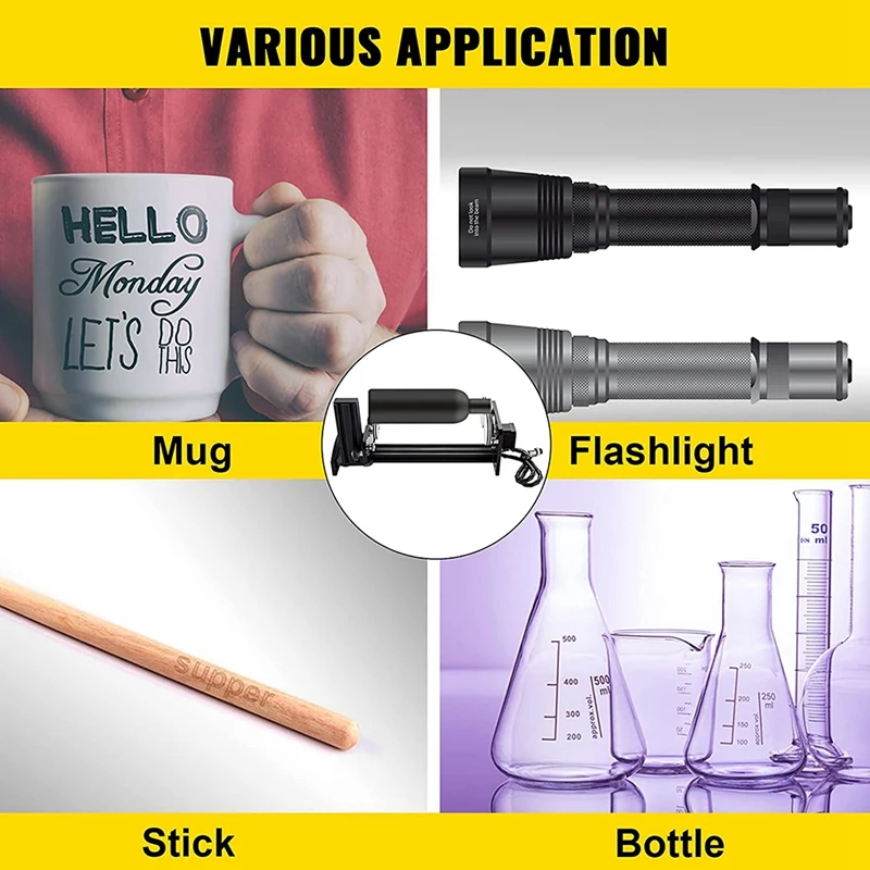 [ENGRAVE ON CYLINDRICAL SURFACES] - This rotary axis attachment can work with your laser-engraving machine perfectly, allowing you to easily engrave on cylindrical surfaces or round objects as bottles, tubes, pipes, bowls, and more in 360°.