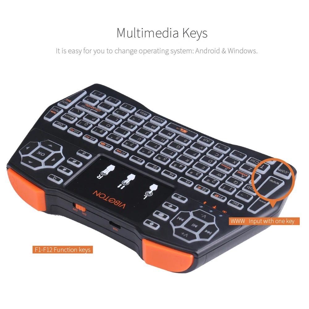 -2,4 ГГц мини беспроводная клавиатура (батарея в комплект не входит), вы получаете до 20 м рабочее расстояние, не выходя из вашего дивана или сиденья