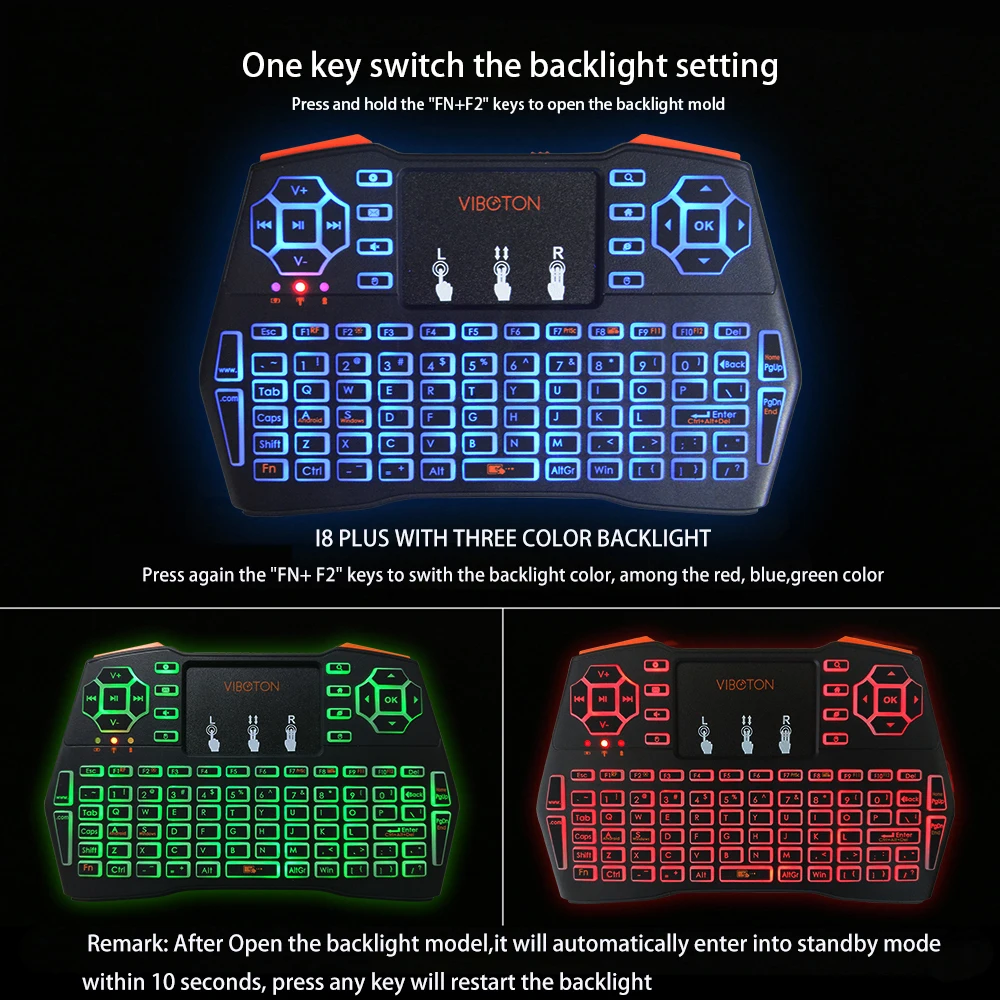 I8 Plus обновленная Беспроводная мини-клавиатура с мульти-сенсорной панелью и мышью для ТВ-бокса, компьютера, планшета, ноутбука, Mi box, проектора, Tmall box, net box, настольного компьютера. Силиконовые клавиатуры с хорошей эластичностью. Расширенный 2,4 GHz RF технологии. Эта беспроводная мини-клавиатура с сенсорной панелью мышь имеет 3 с аккумулятором, Трехцветная подсветка по желанию, просто нажмите Fn + F2 кнопку, чтобы выбрать цвет (синий, зеленый, красный). Поддерживающий мультитач для вашего удобства, идеальный инструмент для вас и вашей жизни!