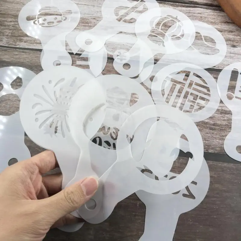 Шаблон печати на выбранной форме, такой как: Над Пеной Кафе Латте, капучино кофе или торт. Затем, с какао-порошком, корицей, шоколадным порошком, зеленым чайным порошком и другим порошковым мелким сетчатым ситом в печатание формы и встряхивание. Затем, снятие порошковой трафаретной печати, удаление формы, так что оставайтесь красивой графикой, которую вы хотите, в поверхности кофе или торта будет!