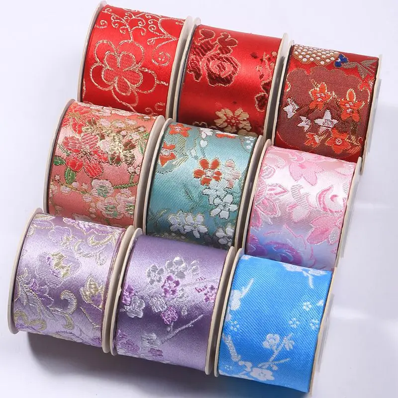 Красная атласная Вышивка Лента этнические жаккардовые материалы ручной работы 25 38 мм китайский новый год День Святого Валентина обертывание украшения дома кружева