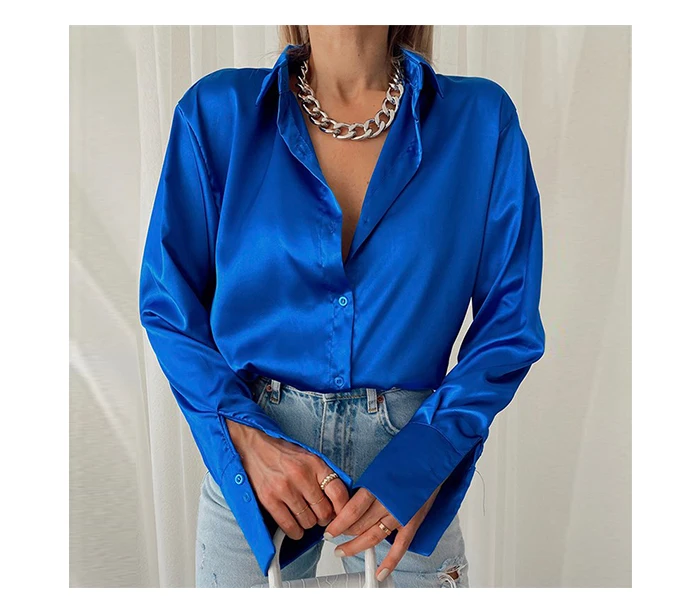 Женская рубашка с оборками простая однотонная Базовая в стиле ретро весна 2021 -
