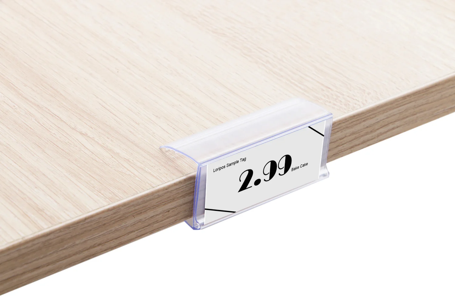 Наши держатели для этикеток на полках подходят для металлических, пластиковых и деревянных полок, которые измеряются как наш знак изображения