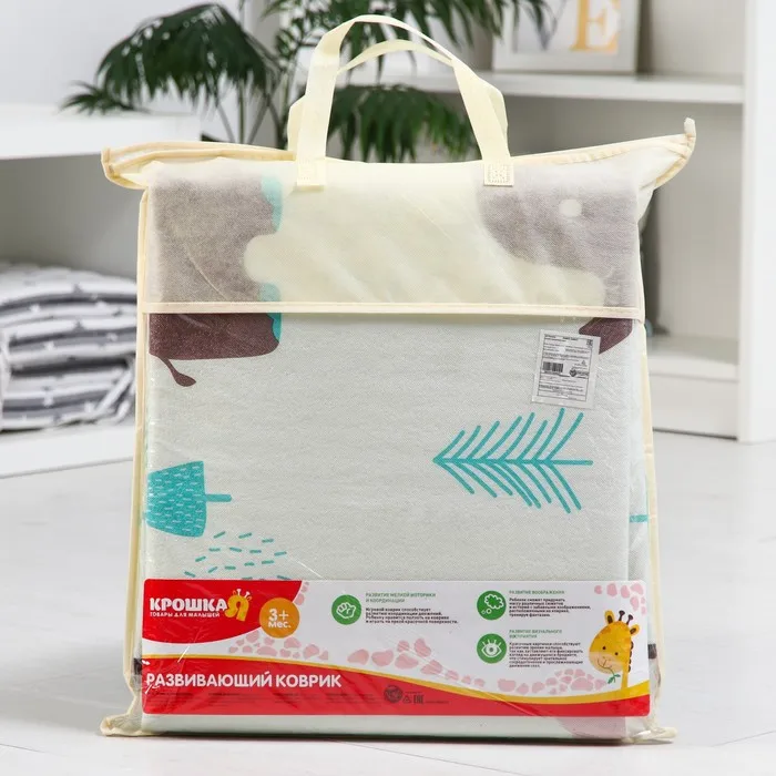 Коврик поможет быстро создать игровую зону в квартире или на природе. Изделие прекрасно подходит для малышей, которые учатся ползать или уже делают первые шаги. На внешнюю сторону изделия нанесены яркие изображения. Занятия на коврике познакомят малютку с разными цветами и формами, поспособствуют развитию воображения, зрительного восприятия и концентрации внимания.
