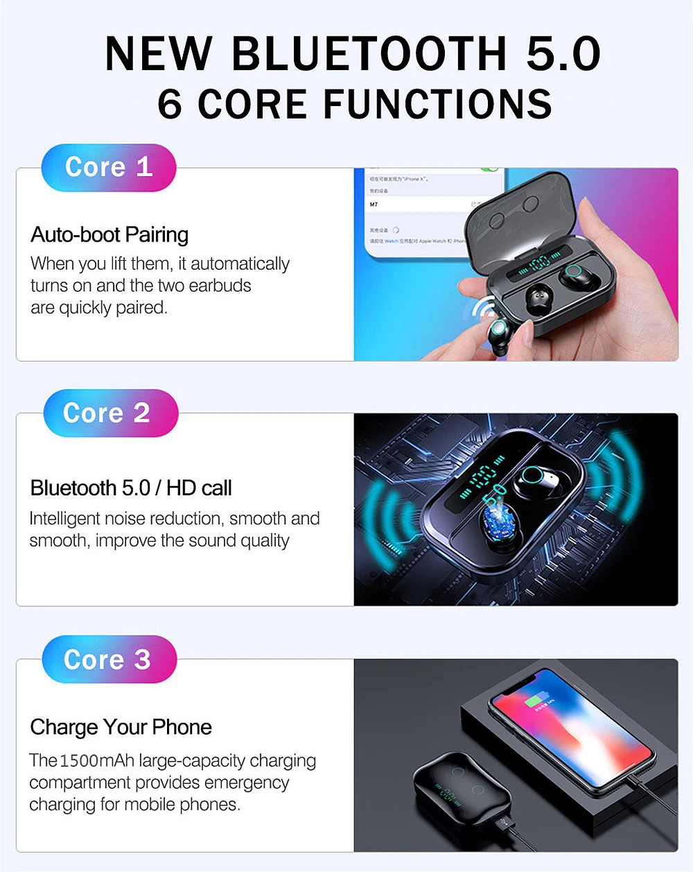 При покупке bluetooth-гарнитуры tws, пожалуйста, прочитайте следующие инструкции: из-за длительной транспортировки мощность гарнитуры tws будет истощена. После получения посылка, вы не сможете использовать гарнитуру, и она может быть выключена. Первое, что нужно сделать, это снять синюю защитную пленку под наушниками и зарядить коробку для наушников в течение 30 минут. Очень важно. Спасибо!