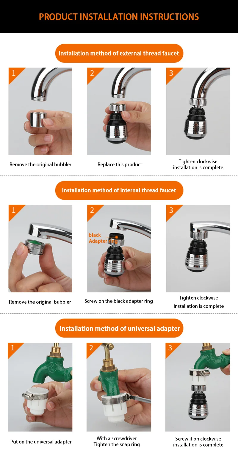360°rotation: Water can easily covers the whole sink,never worry about clean the sink in cold winter.