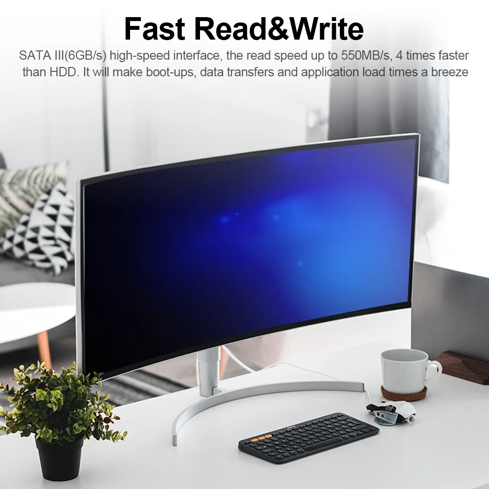 SATA III(6GB/s) high-speed interface, the read speed up to 550MB/s, 4 times faster than HDD. It will make boot-ups, data transfers and application load times a breeze.