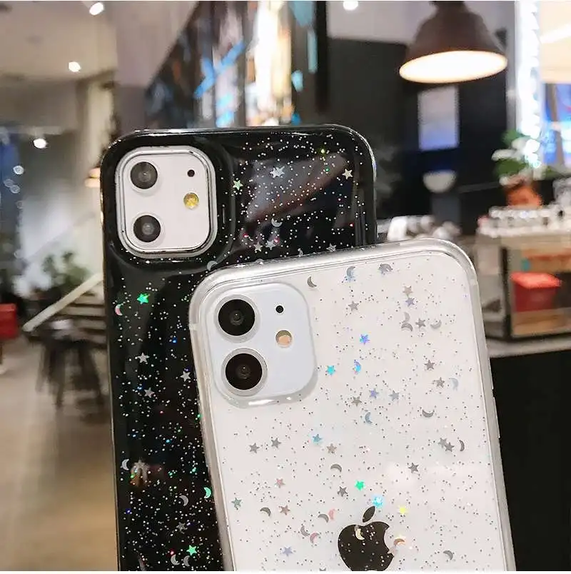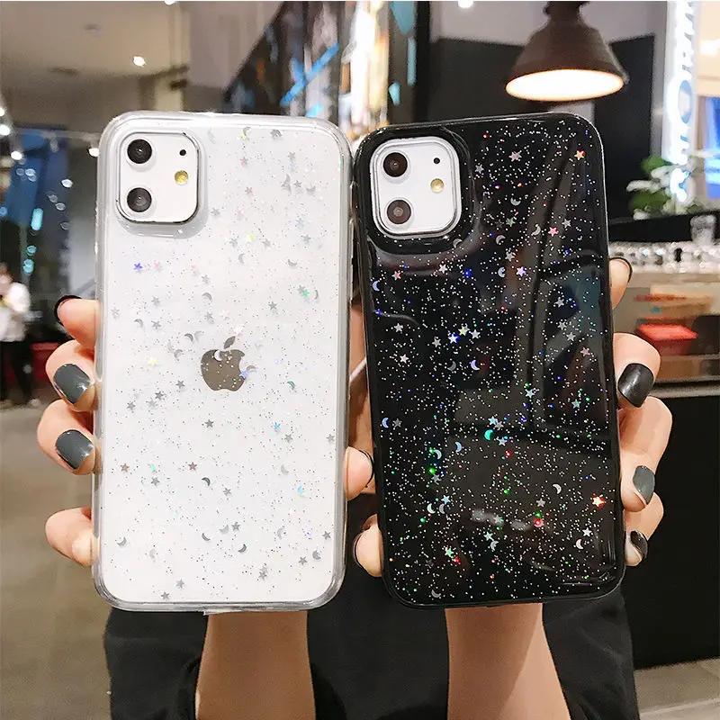 Роскошный блестящий Блестящий Прозрачный чехол для телефона iphone 8 7 Plus 6 6s 5 5s SE, эпоксидный чехол Star Moon для iphone 13 12 11 Pro Mini X XS Max XR
