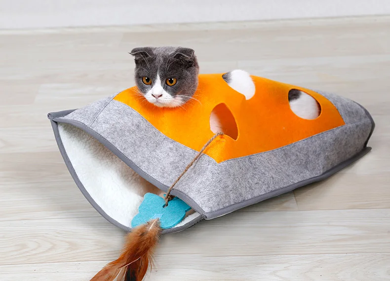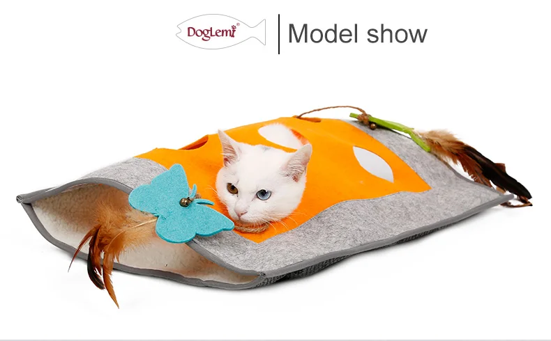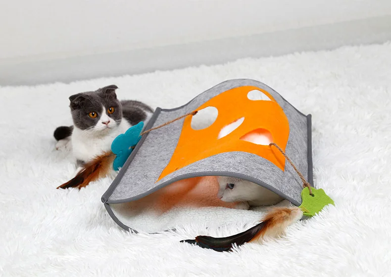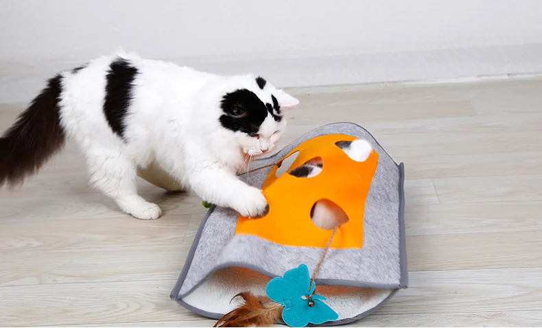Interactive Cat Toy Pad Funny Feather Collapsible Tunnel Bored Cat Pet Mat Peek Hole for Kitten Playing Teaser Toys Cat Supplies