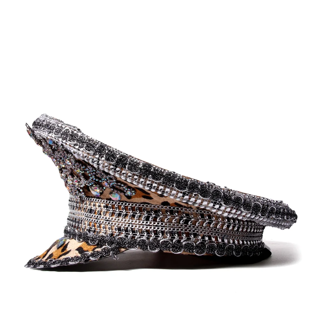 Красивая белая шляпа с блестками, стиль праздничной шляпы с голографической отделкой и стразами.