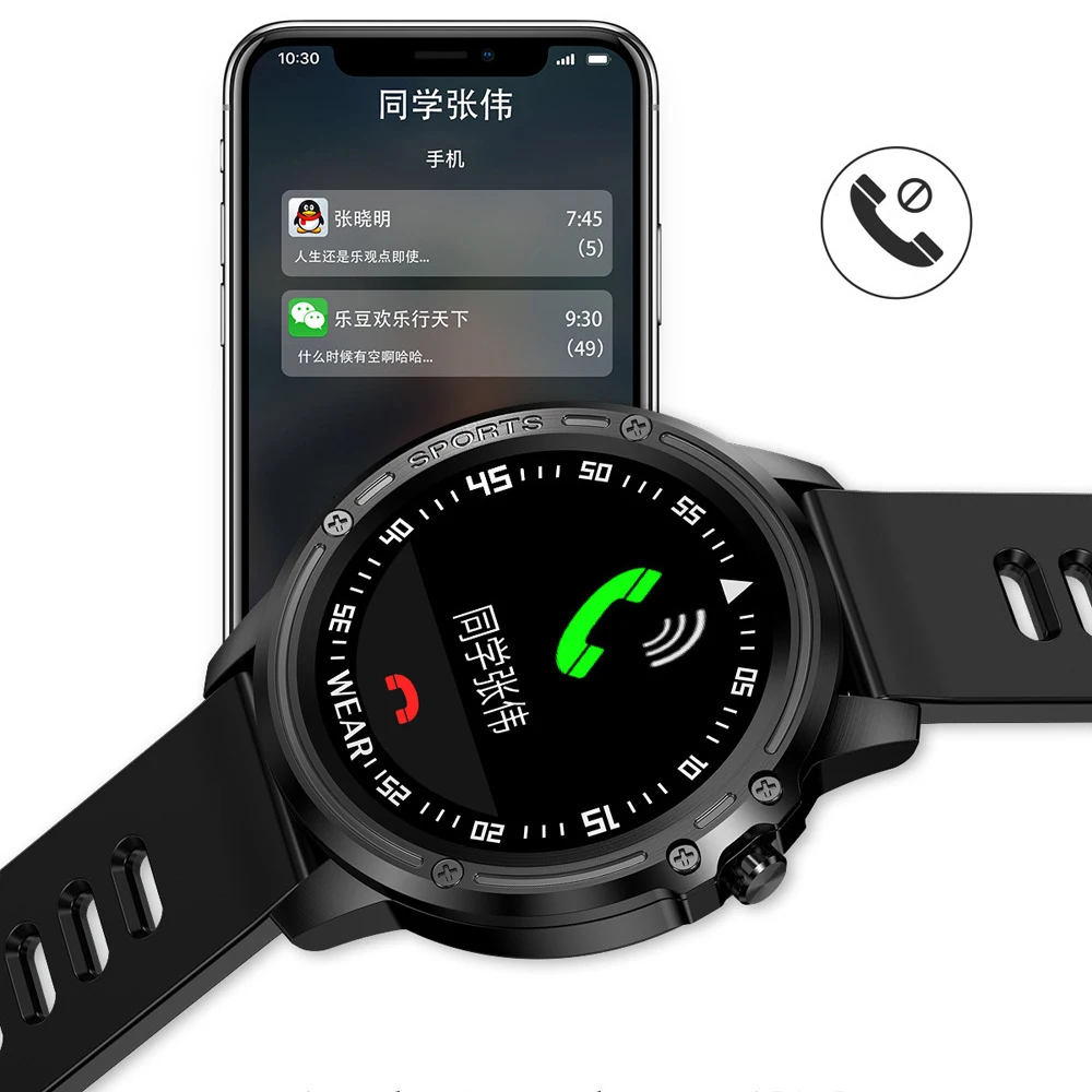 L8 Смарт-часы 1,2 дюймов TFT круглый Экран мужские IP68 Водонепроницаемый с ЭКГ крови Давление сердечного ритма спортивный фитнес-браслет