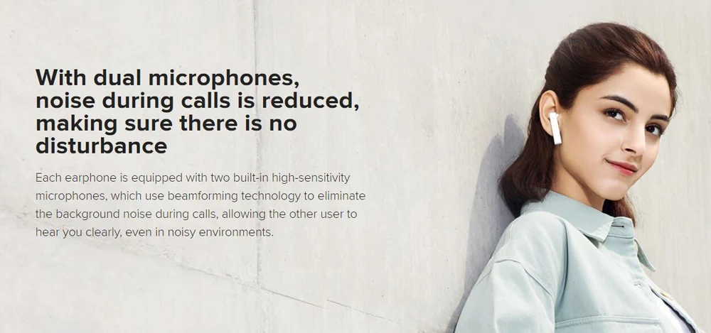 Двойной микрофон для снижения уровня шума, не опасаясь помехКаждая гарнитура имеет два встроенных высокочувствительных микрофона и использует технологию beamforming для устранения фонового шума во время вызова, чтобы другие вечерние четко услышали Ваш голос, И четкие звонки в шумных условиях.