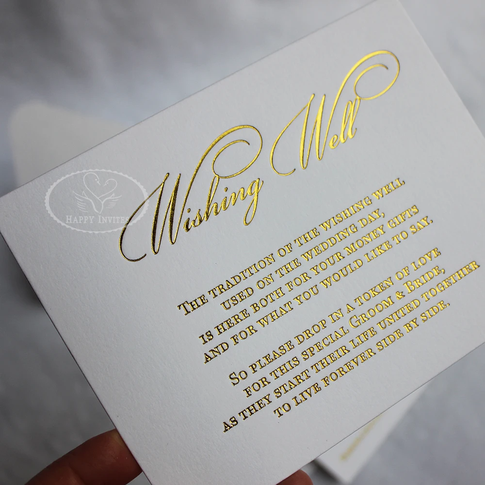 100 шт на заказ простой белый цвет приглашение на свадьбу карта 600gsm хлопок бумага с золотой фольгой Письмо желая хорошо заводская цена цвета опционально HI1220 Бесплатная доставка в некоторые страны/регионы