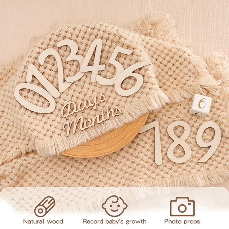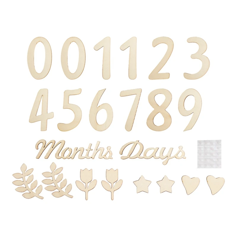 19Pcs/Set Wooden Babe Monthly Milestone Card For Newborn Baby Photography Engraved Age Milestones Wood Card Newborn Photo Accessories