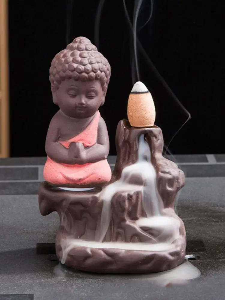 Когда в горелке горит конус ладана, следы дыма имитируют Водопад/облачный туман на вершине горы у основания фигурки