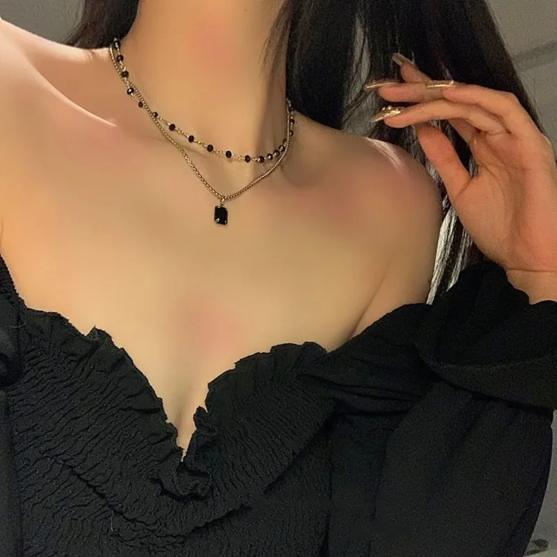 Ожерелье-чокер для женщин, Двухслойное ожерелье с бусинами, подарок для друга, серебряное геометрическое ожерелье, оптовая продажа, ювелирные изделия для воротника