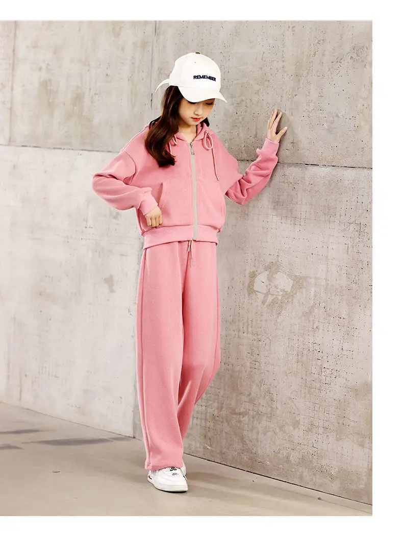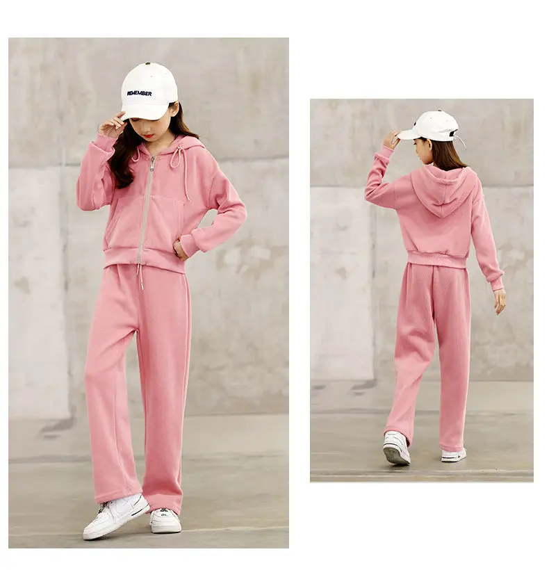 🍓🍓🍓Осенние комплекты одежды из 2 предметов для больших девочек куртка на молнии с капюшоном и длинными рукавами и свободные штаны с эластичной резинкой на талии повседневная спортивная одежда для подростков🍓🍓🍓
