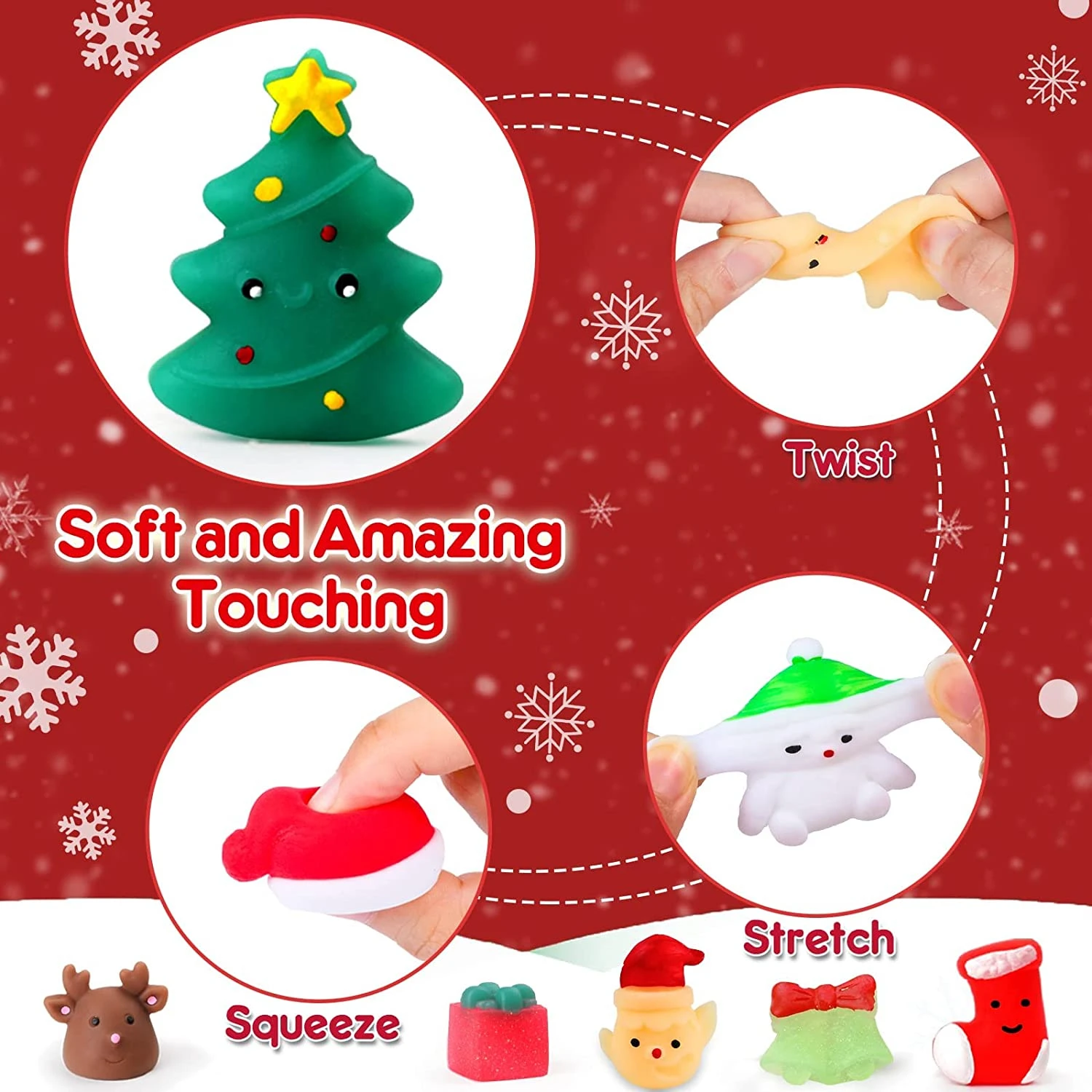 Рождественские сжимаемые игрушки отлично подходят для мальчиков и девочек. Эти сжимаемые игрушки могут растягиваться, сдавливаться, сгибаться, вращаться, а затем восстанавливаться до исходной формы, снимать стресс и приносить больше удовольствия людям