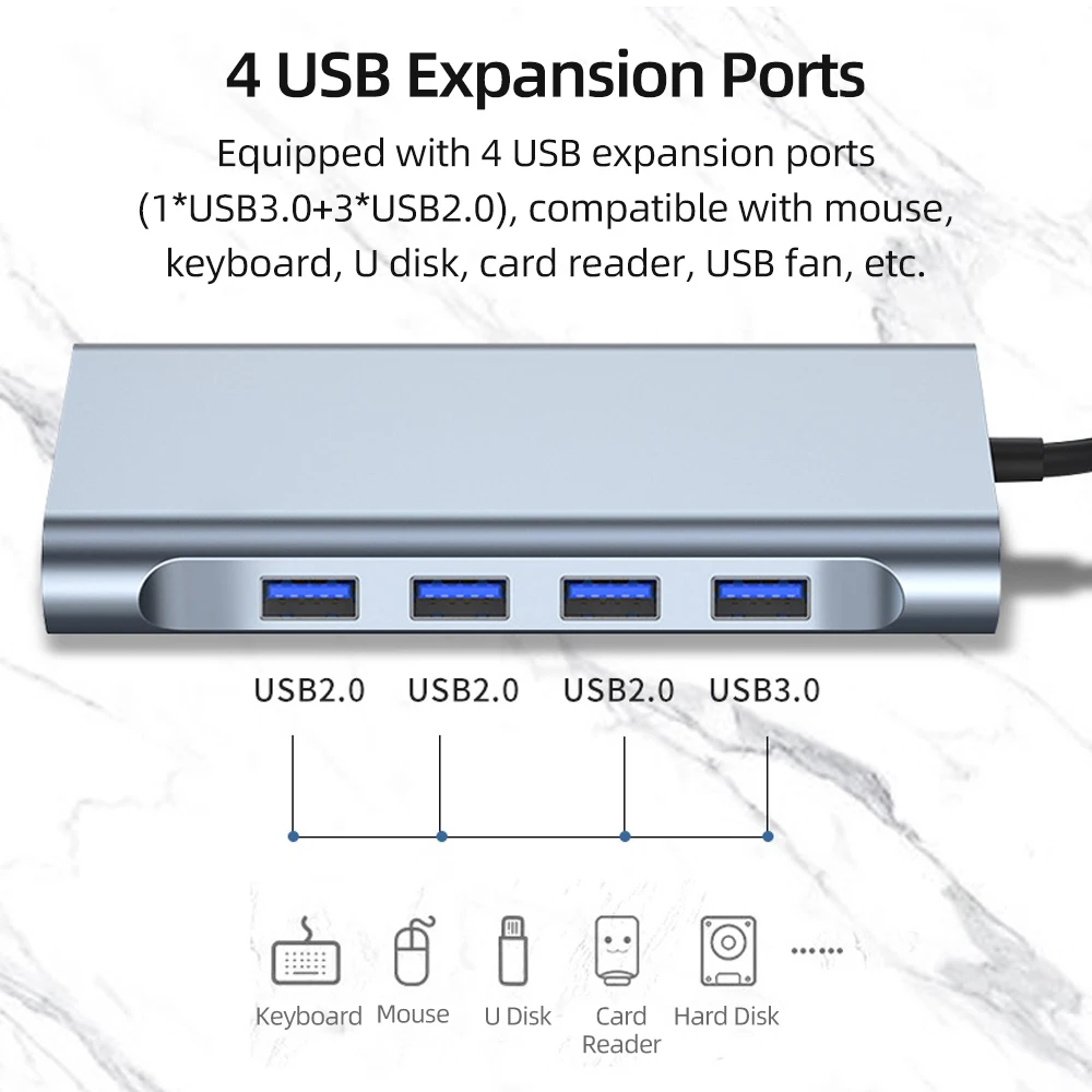 Порт расширения: 1 * USB3.0, 3 * USB2.0, 1 * HD, 1 * VGA, 1 * USB-C PD, 1*100M RJ45, 1 * Слот для sd-карты, 1 * слот для карт TF, 1*3,5 мм аудио