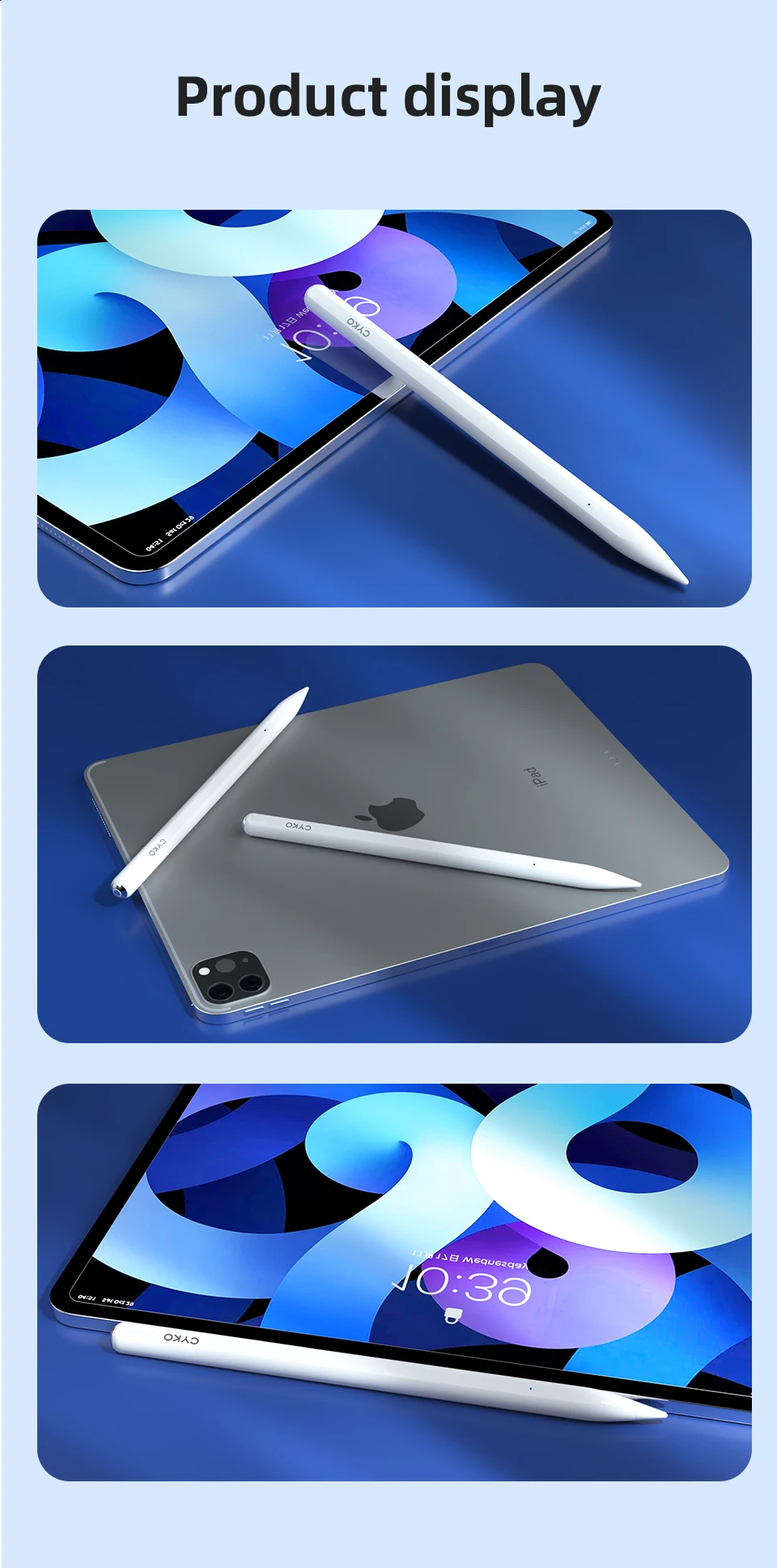 Карандаш CYKO поддерживает полноэкранное отклонение ладони, что делает письмо и рисование очень удобными, без необходимости повесить запястье или носить перчатки.